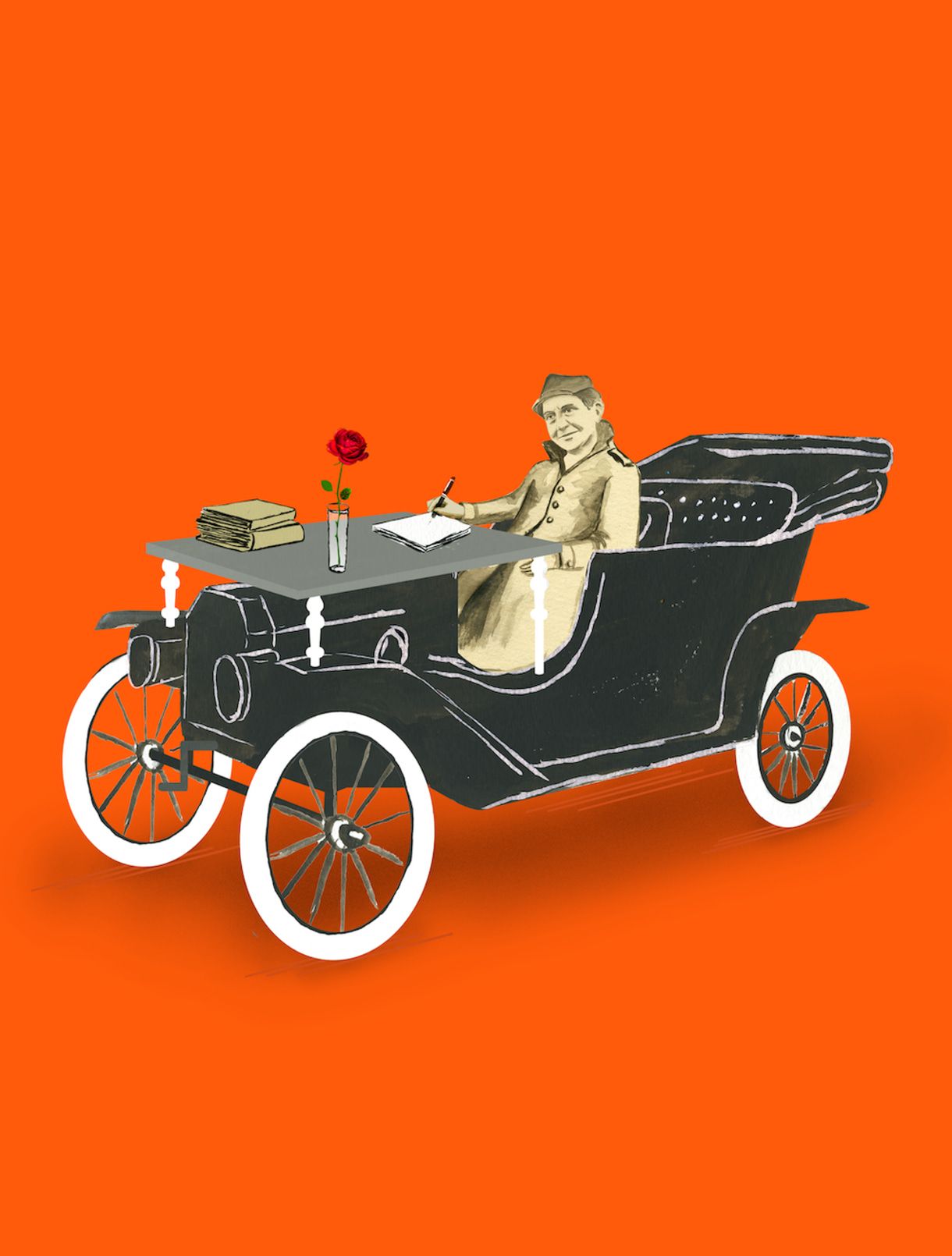 Die amerikanische Schriftstellerin Gertrude Stein, die in Paris lebte, hatte einen besonderen Ort, an dem sie gerne schrieb: in ihrem geparkten Ford Model T. Während ihre Lebensgefährtin Alice B. Toklas Besorgungen machte, blieb Stein im Auto sitzen und ließ die Umgebung der Pariser Straßen auf ihr Schreiben einwirken.