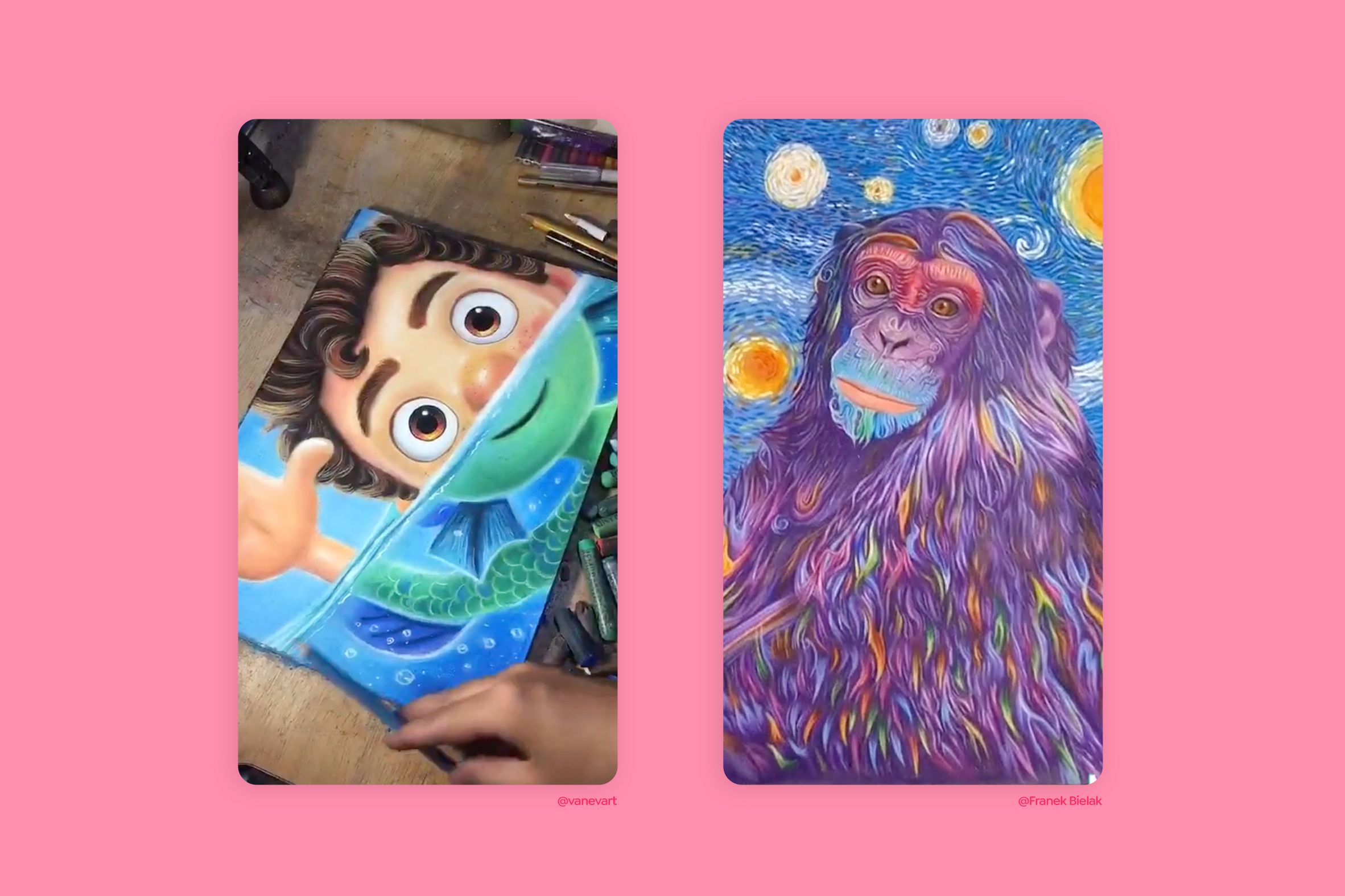 Es ist viel einfacher, kreativ und effektiv zu sein, wenn wir im Voraus wissen, welche Dinge im Bereich der Kunst auf TikTok am besten funktionieren. Welche Formate sind das? Für diese beiden Creator sind es folgende: