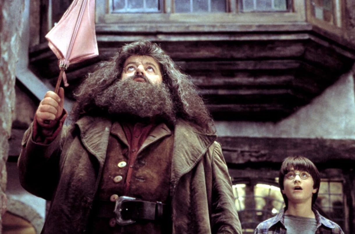 Ein Zaubertrank aus vier Zutaten: ausgeklügelte Kulissen, ein Stunt-Double, erzwungene Perspektive und der Einsatz eines Greenscreens sorgten dafür, dass Hagrid (gespielt von Schauspieler Robbie Coltrane) halb Riese, halb Mensch aussah.