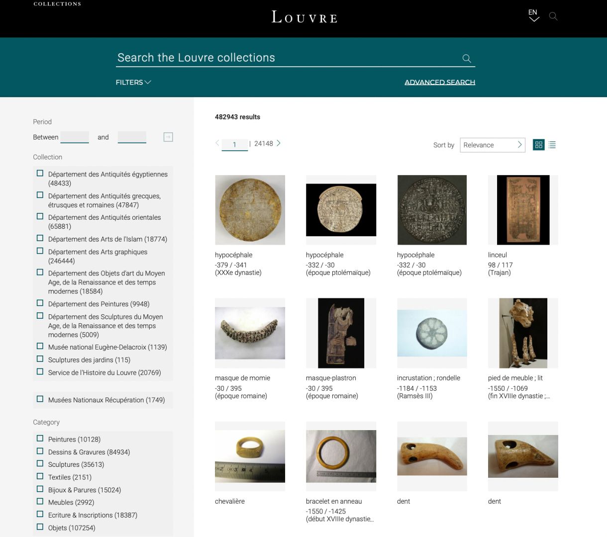 Es war bereits möglich, das Museum virtuell zu besichtigen, aber die neu eingerichtete Website auf louvre.fr ermöglicht nun den direkten Zugriff auf die gesamte Dokumentation, die von den Kuratoren des Louvre für jedes Werk zusammengestellt wurde. Dies bedeutet, dass du Zugang zu 480.000 Einträgen hast, einschließlich der Bilder und objektiven Details.