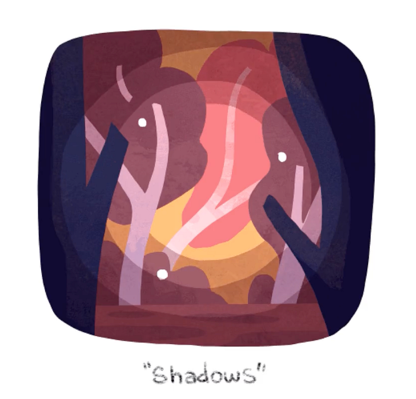 Inizio sempre da uno schizzo. Per questo pezzo ne ho fatto uno piccolo e animato, ma di solito uso solo una matita. Volevo che sembrasse un cerchio di luce in una foresta, con l'oscurità intorno.