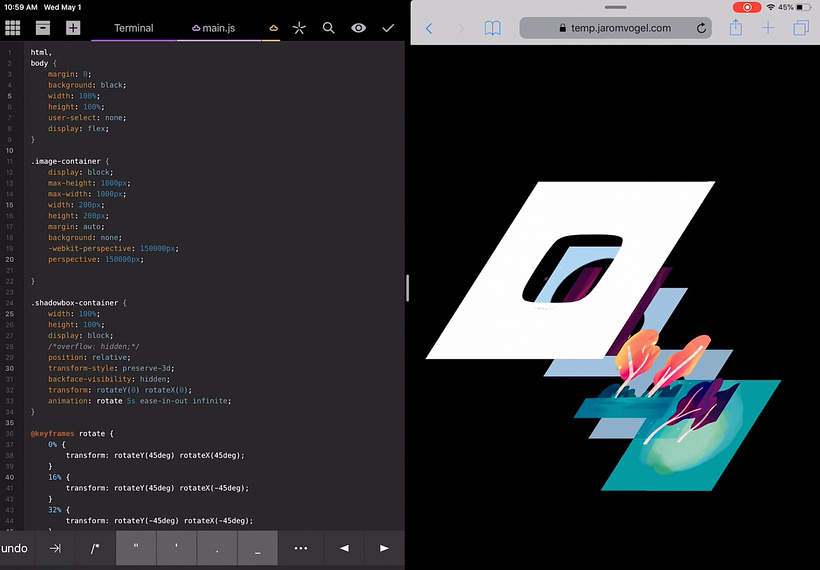 Carico tutti i file in una specifica cartella sul mio sito web e li traduco poi in HTML. Per questa illustrazione, ho deciso di usare trasformazioni 3D in CSS. In altri progetti, ho usato un effetto parallax più semplice, dove ogni strato si bilancia indipendentemente quando si muove, dando un senso di profondità di base.