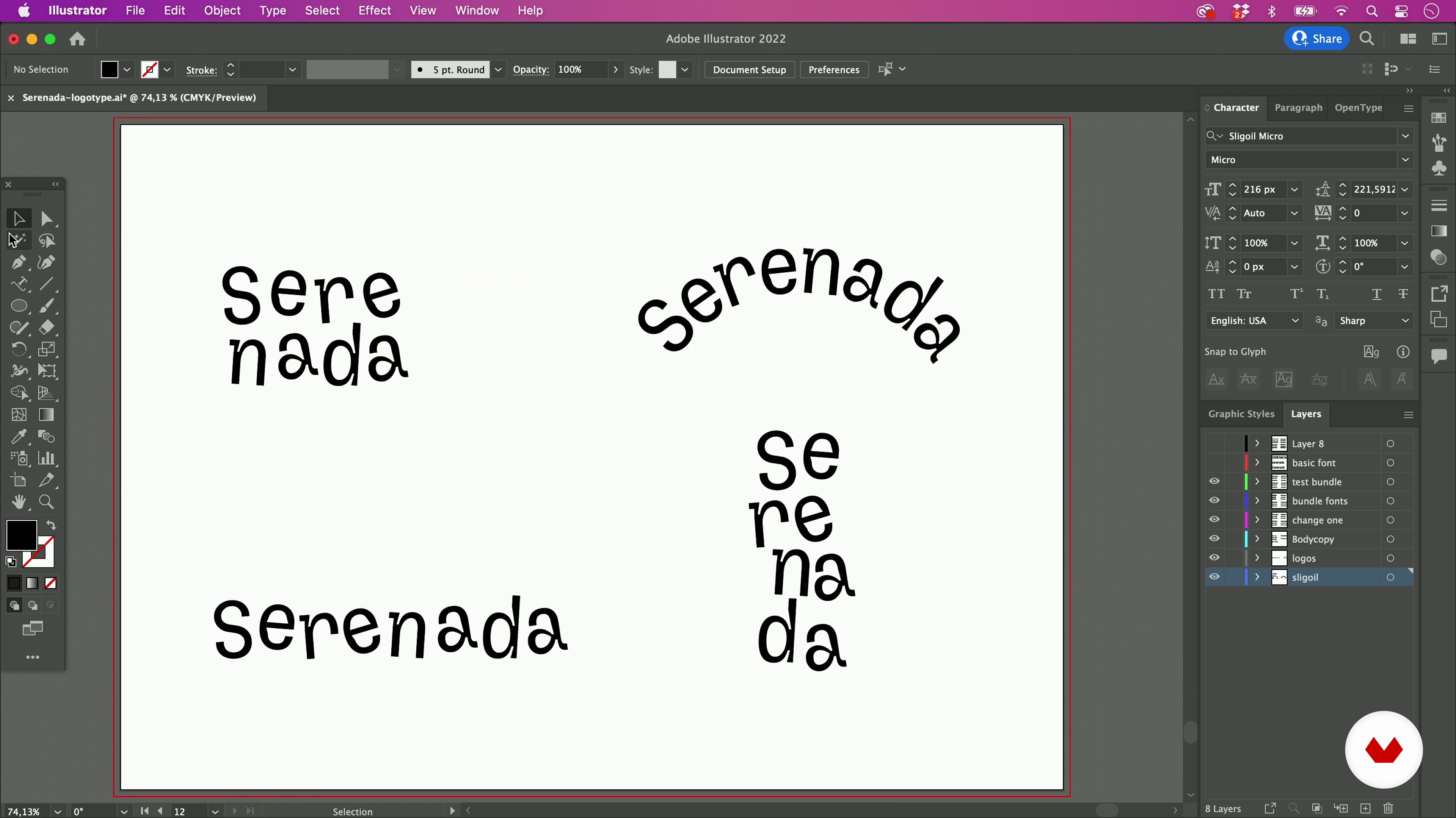 “Da sich unser Kurs an Design-Anfänger richtet, müssen Sie kein professioneller Icon-Illustrator sein. Wir konzentrieren uns daher auf hochwertige Schriftarten, anstatt ein Logo zu zeichnen. Wir durchsuchen vertrauenswürdige Schriftartenseiten und laden einige schöne, minimalistische und lesbare Typografien für unseren Schriftzug herunter. Anschließend erstellen wir in Illustrator das Serenada-Logo. ”