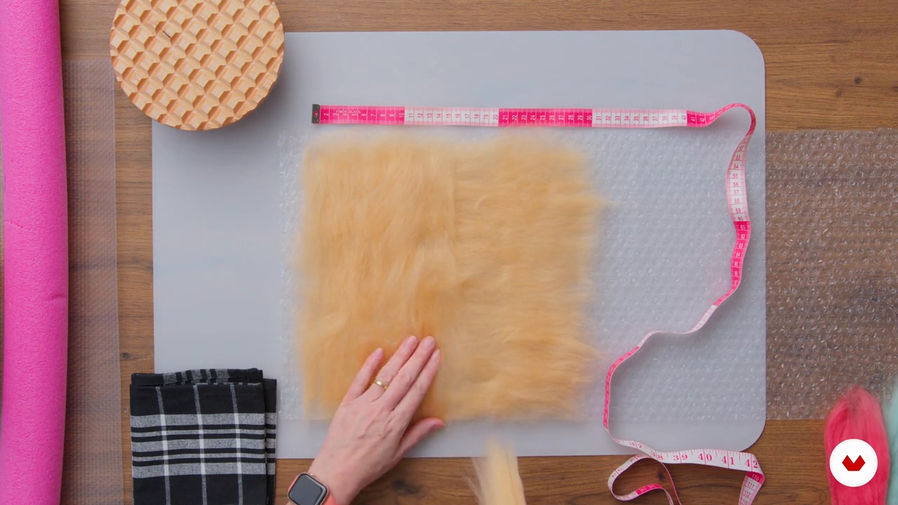 “Nachdem alle Materialien und Werkzeuge bereitliegen, werden wir uns in dieser Lektion den gesamten Filzprozess ansehen und ich werde Ihnen genau zeigen, wie Sie aus Wollfasern ein Stück Filzstoff machen.”