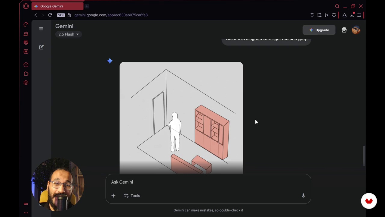 “Ich habe diese Skizze als Entwurf für ein Diagramm gezeichnet. als ich im ersten Jahr der war. Mal sehen. wie wir das mit NanoBanana in eine digitale Version umwandeln können. Nach dem Hochladen unserer Skizze bei Gemini schreiben wir einfach Wandle dies um in digital. vielleicht als Drahtmodell. und schon hast du es. Danach kannst du mit Photoshop spielen. wenn du möchtest. Da wir sagen. es ist ein Drahtmodell. kannst du sehen. dass die Person transparent ist. aber du kannst mit verschiedenen Stilen experimentieren. Und jetzt laden wir es herunter. um es weiter zu bearbeiten und laden es e...”