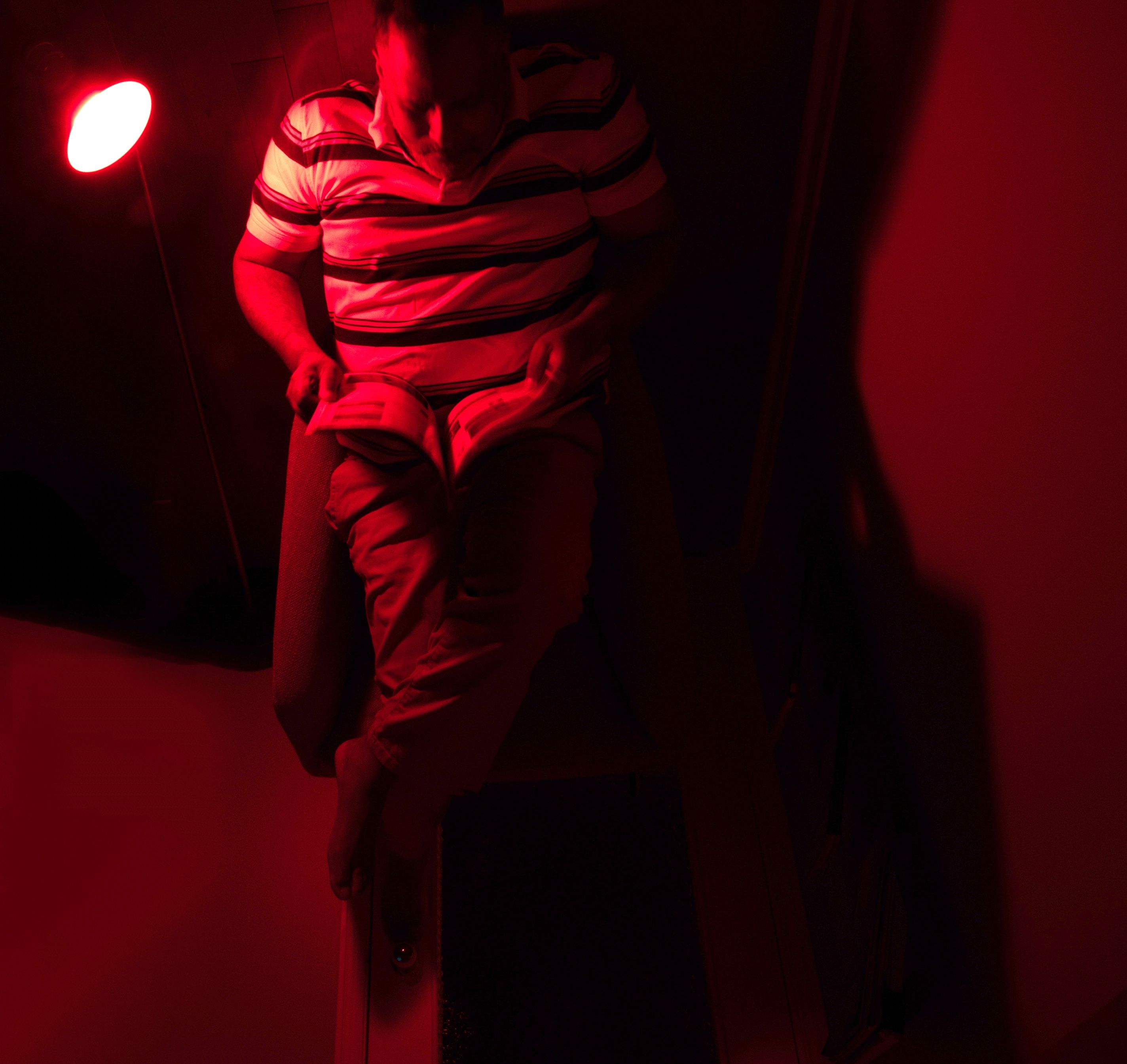 Thank you Laura, you have allowed me to explore photography from another angle. This photo of me was taken lying on the floor. because I knew that I was going to turn it over 90% so that the door becomes the floor and the floor becomes the wall.