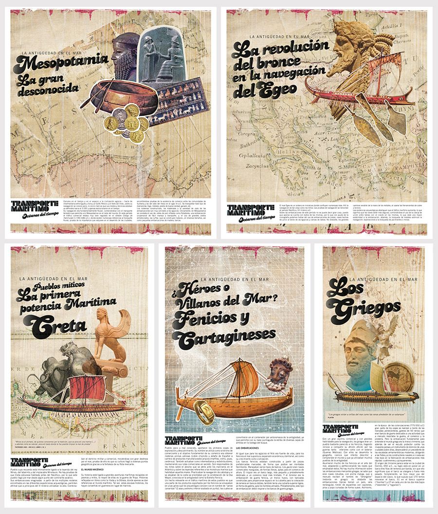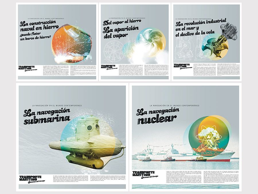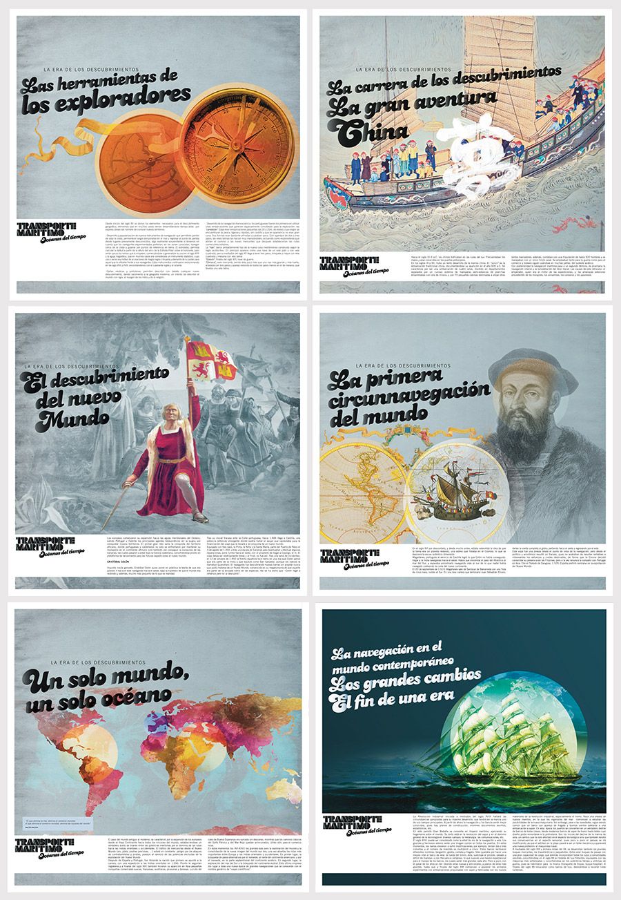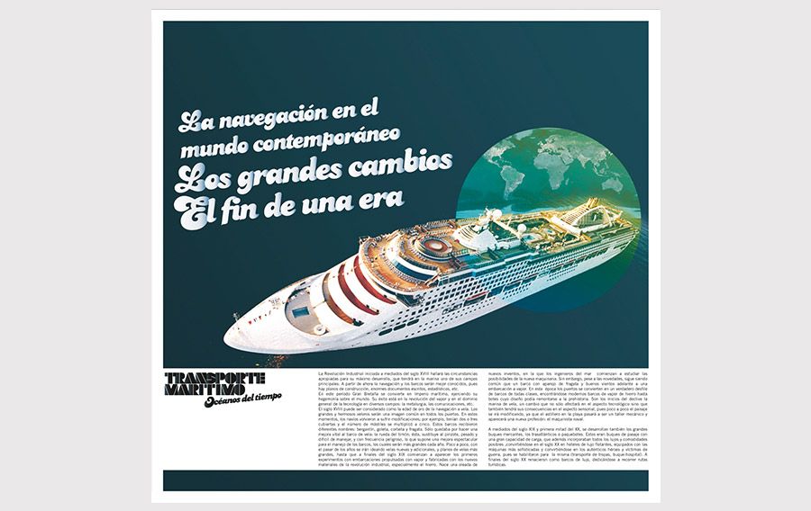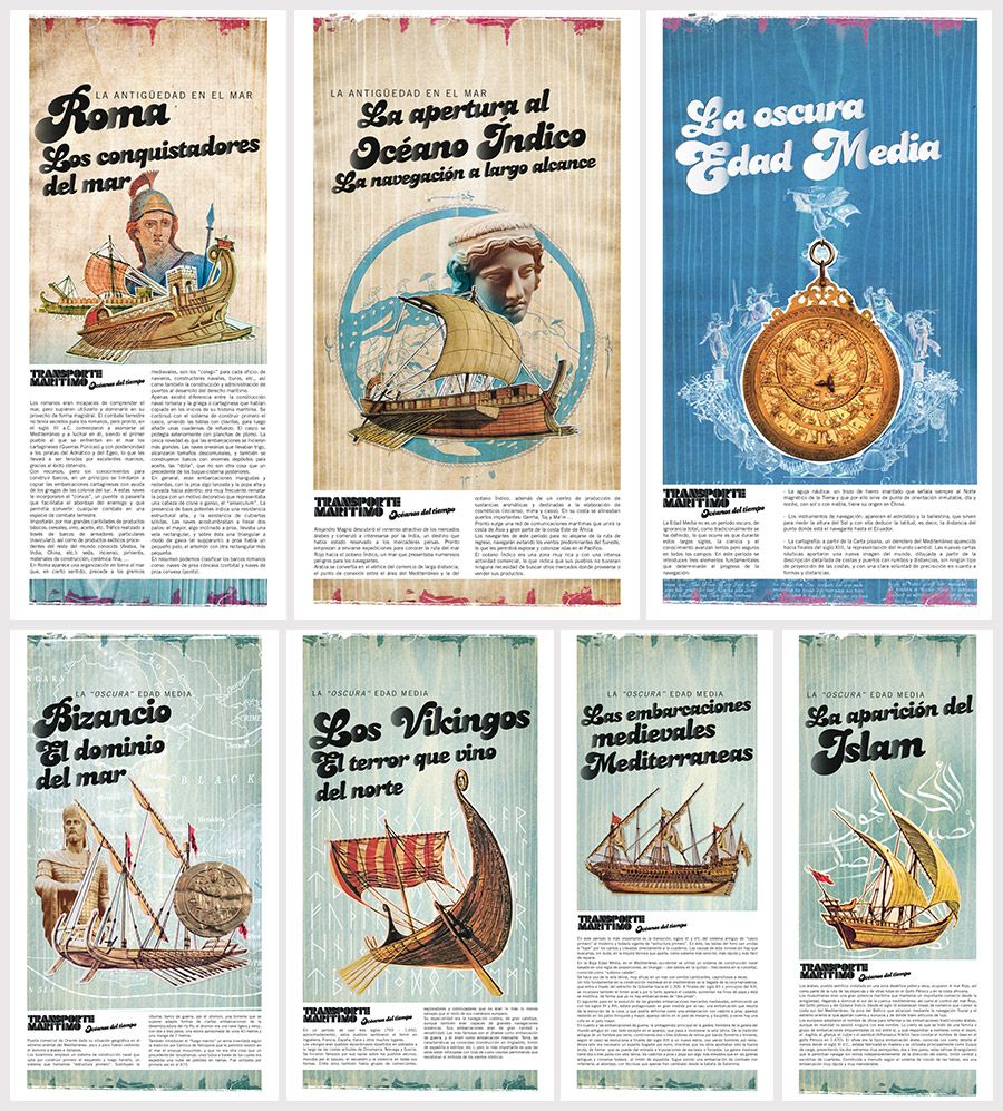 Diseño e ilustración de piezas para la exposición Transporte Marítimo Cliente Museo Elder. Agencia Mixtura. Dirección de arte, diseño, ilustraciones Nicolás Gallardo.
