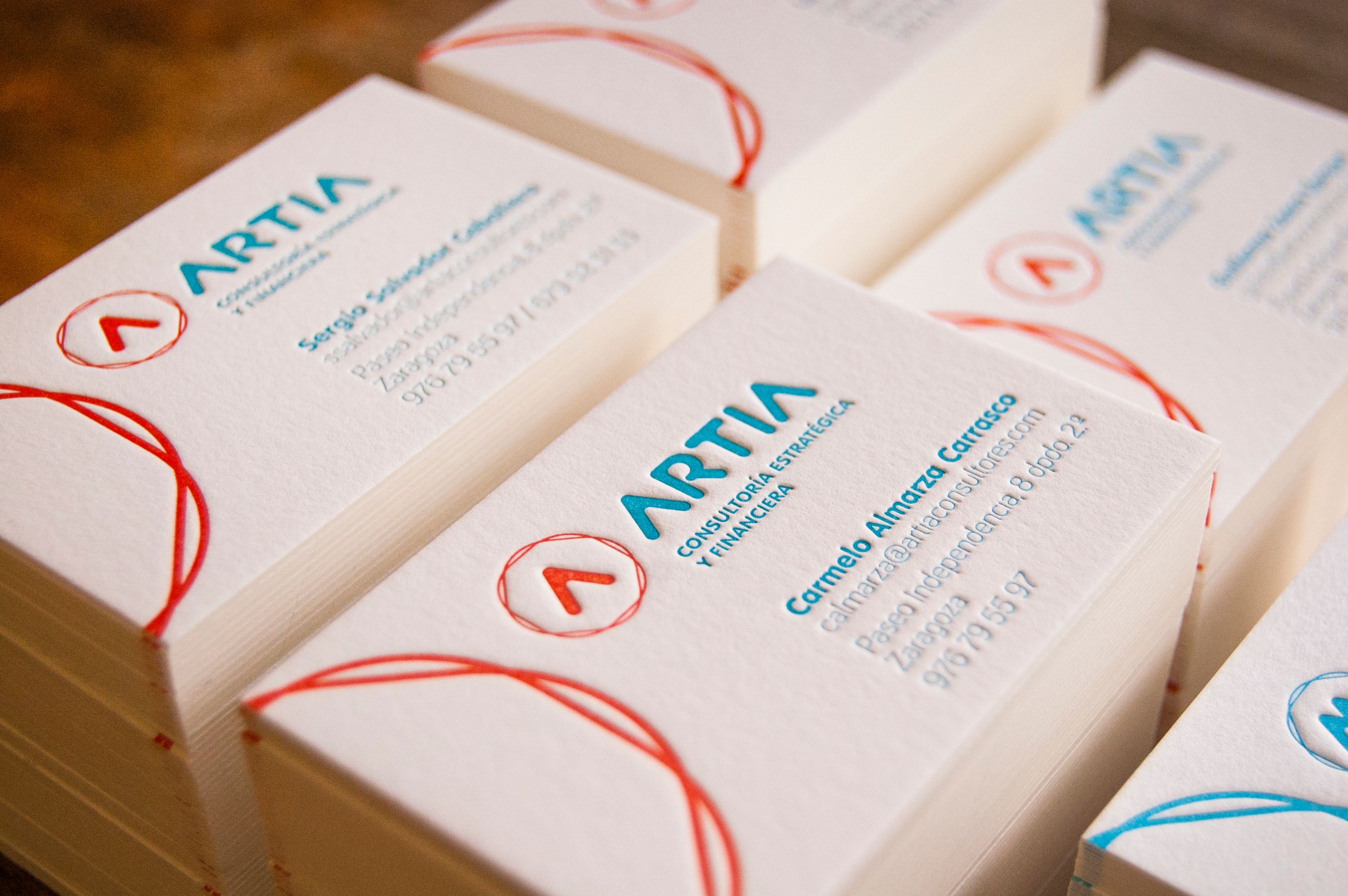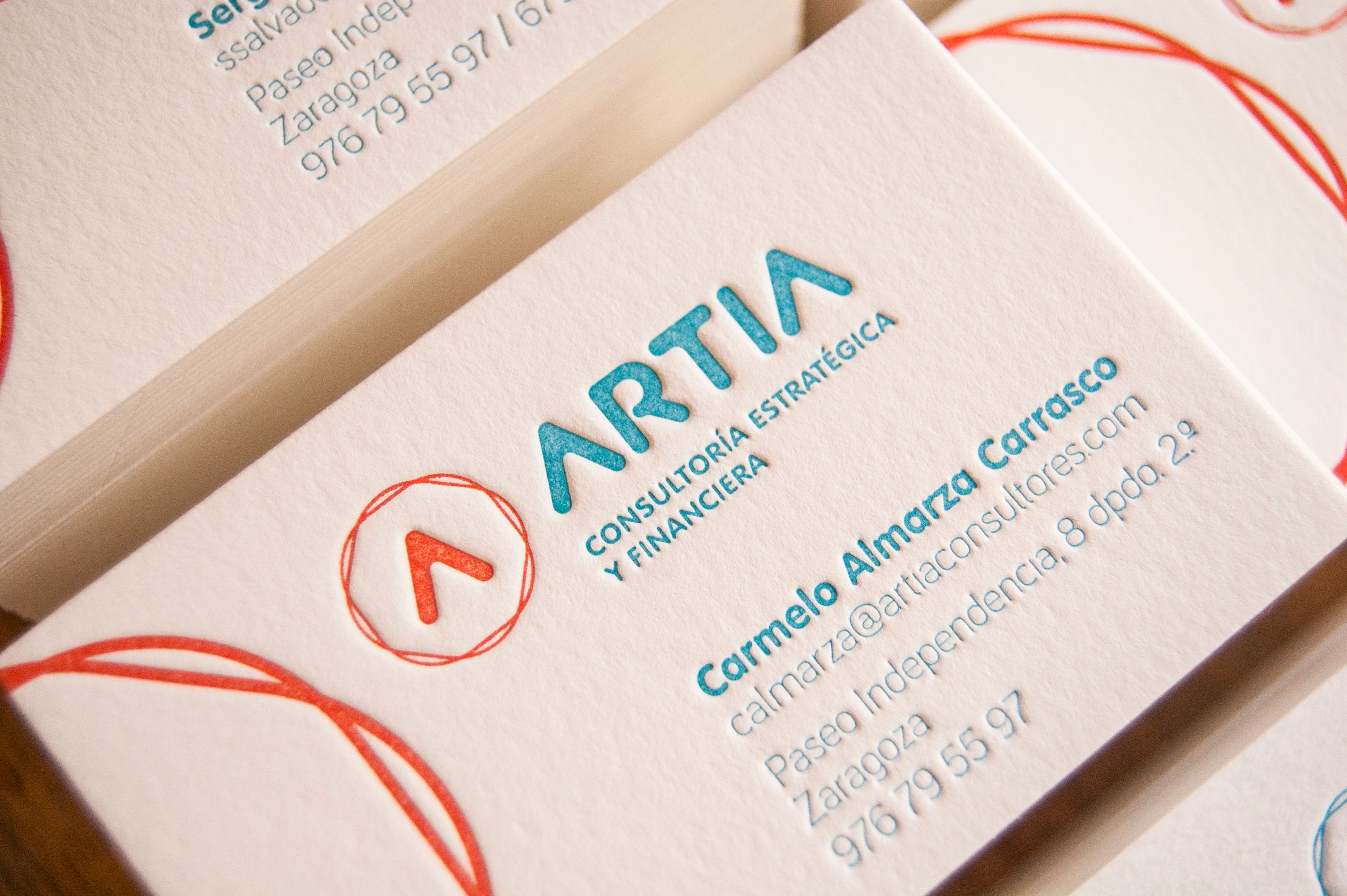 ARTIA es una consultora especializada que ofrece servicios relacionados con los ámbitos estratégico, financiero, fiscal y de mejora y optimización de procesos de las empresas. Por otro lado, JMG ofrece diversos servicios jurídicos y contables entendiendo las necesidades de sus clientes. Estas dos empresas trabajan codo con codo y nos propusieron diseñar sus imágenes con ciertos nexos en común, utilizando la misma gama de colores y una tipografía común para ambos proyectos. Una vez aprobada su imagen corporativa iniciamos el proceso de diseño y estampación de las tarjetas de visita con el acabado escogido por el cliente.