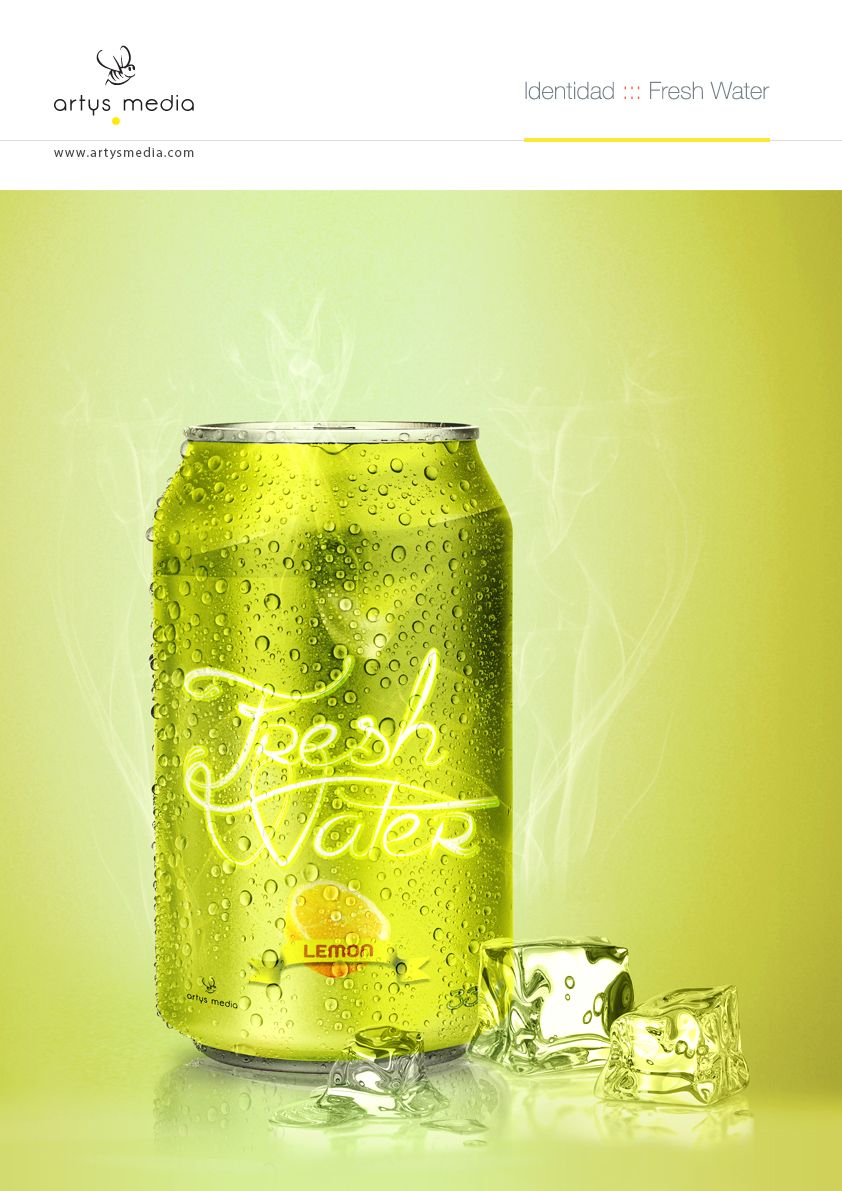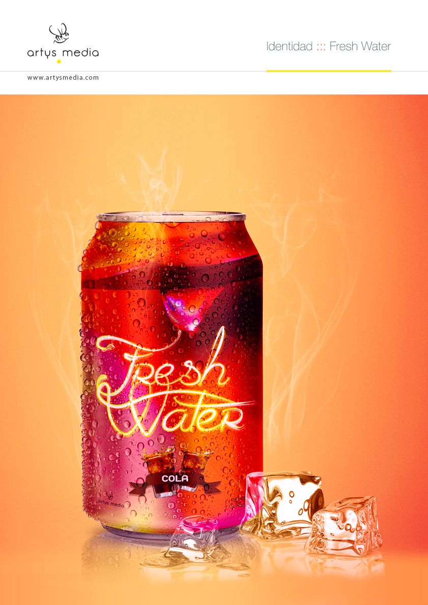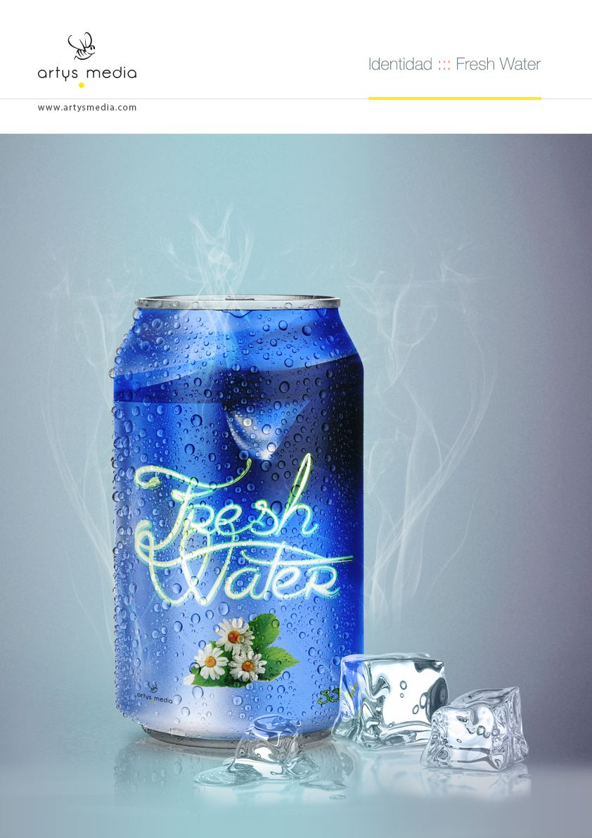 Diseñando con Adobe Photoshop e Illustrator las bebidas de la marca ficticia Fresh Water.