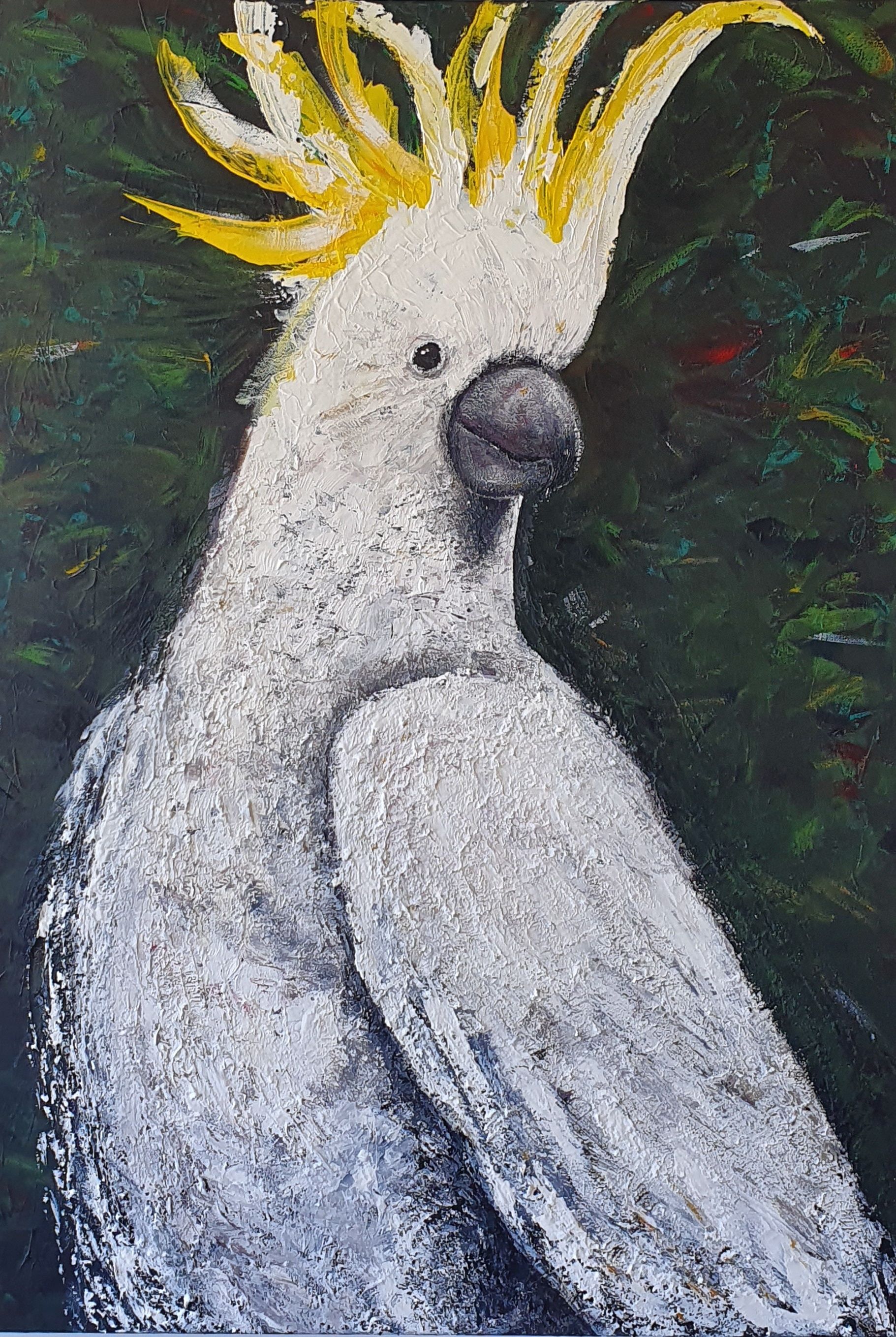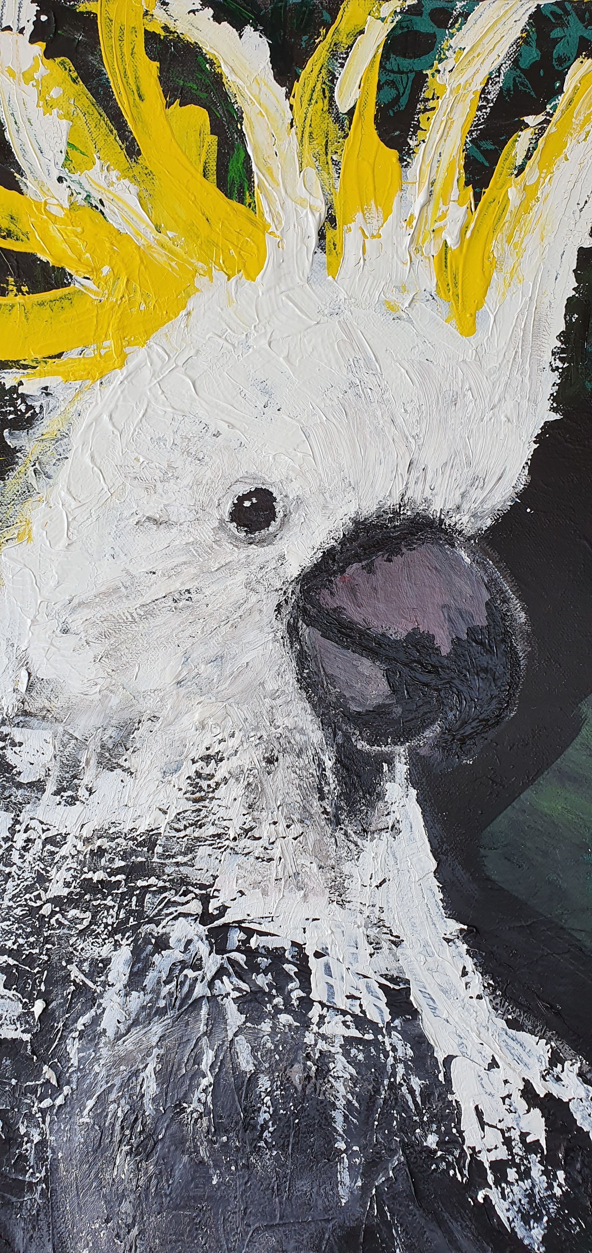 I painted this cockatoo in May 2020. COVID gave me a much needed kick-start to my creative side. It was after the first confinement but the last term of school had recommenced online rather than on-site, so as a way to share something personal with my students, I started drawing and painting on of my favourite Australian birds, the cockatoo.