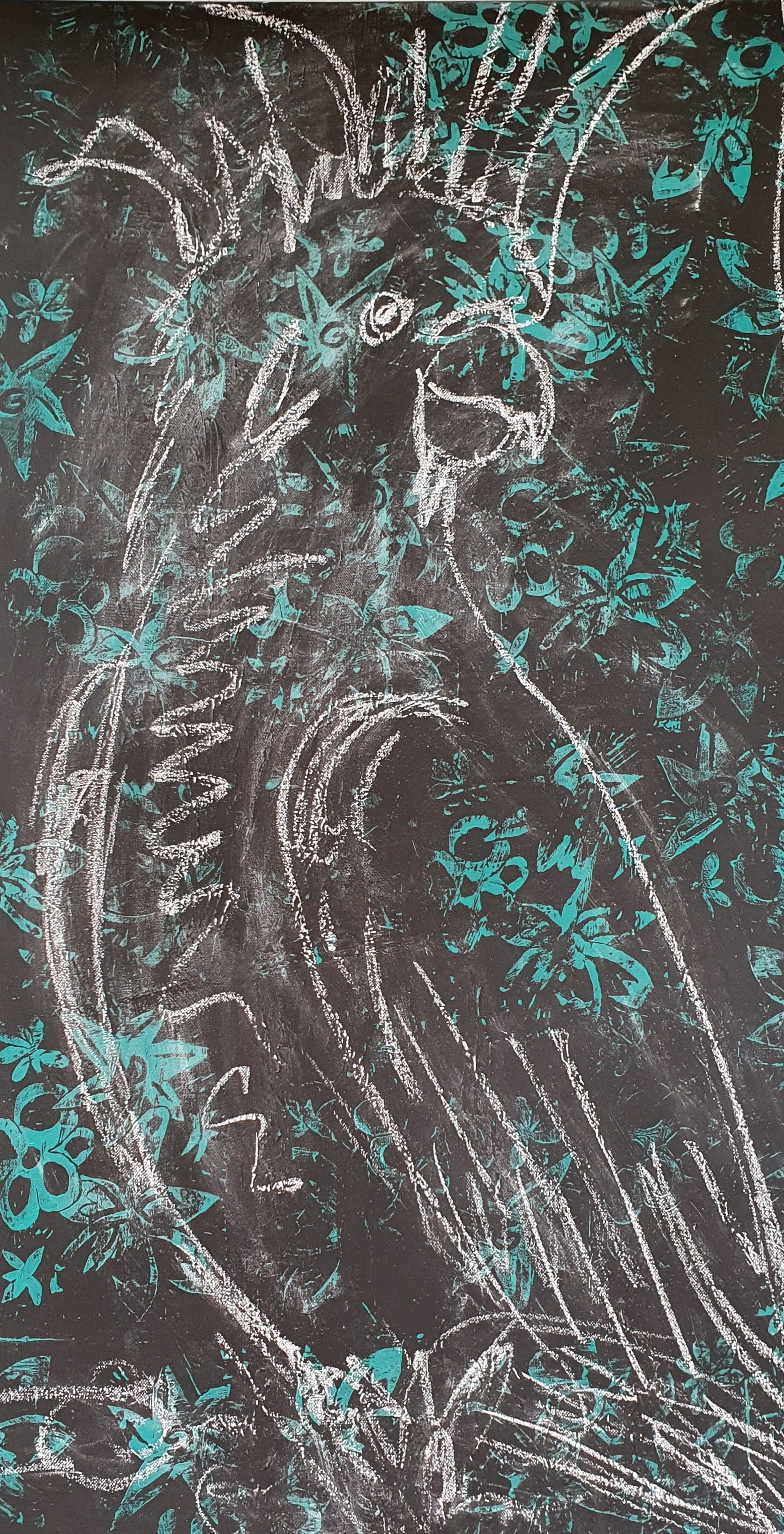Next I sketched the cockatoo with chalk and layer by layer I worked on it until I achieved this.