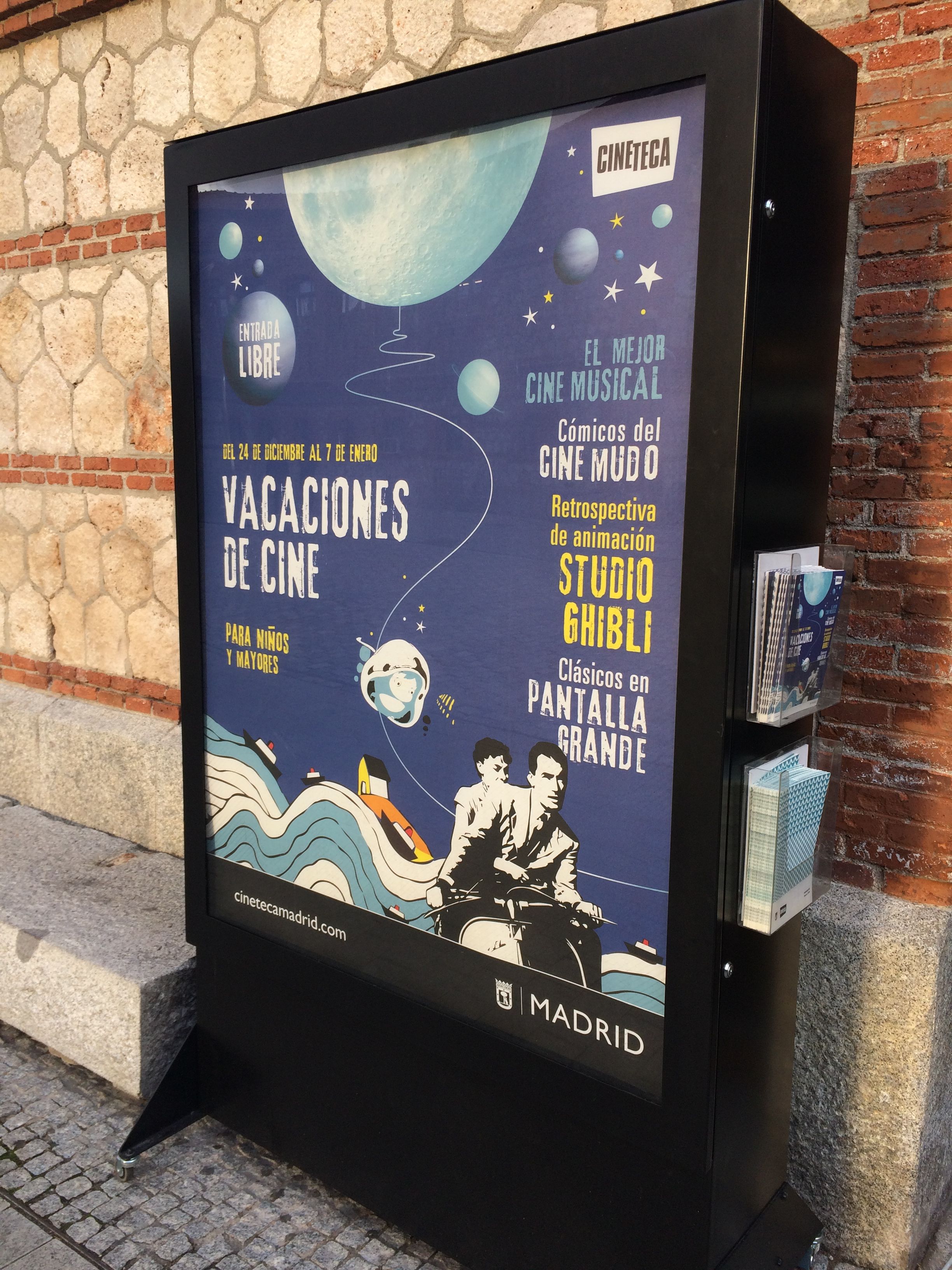 Creatividad para la campaña publicitaria Navidad 2018 de Cineteca Madrid, desarrollada gráficamente como carteles de diferentes formatos y folleto.