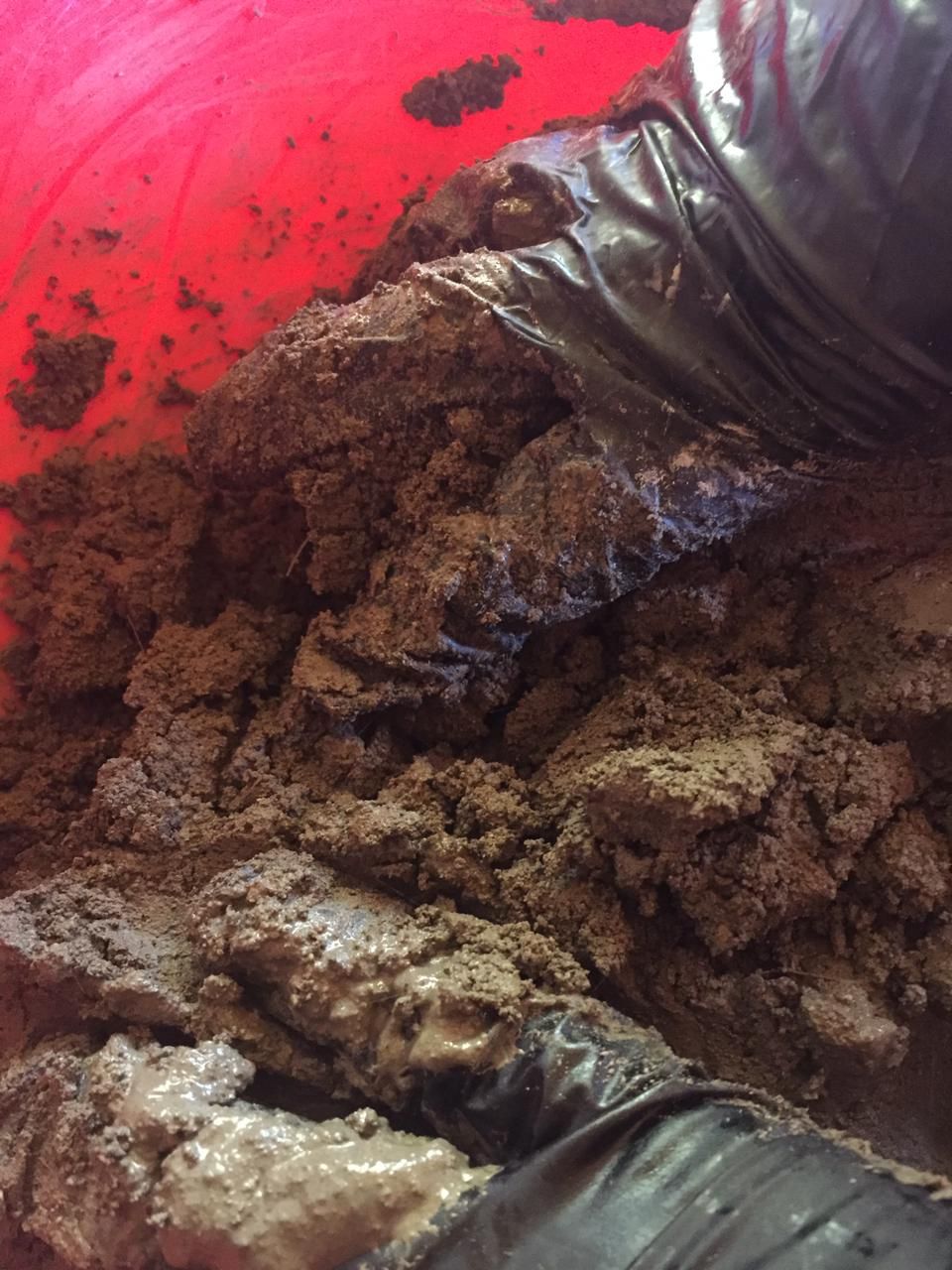 Cantidad de mezcla para 3 macetas: 3 kg de secos (cemento y arena) + agua + pegamento + fibra.