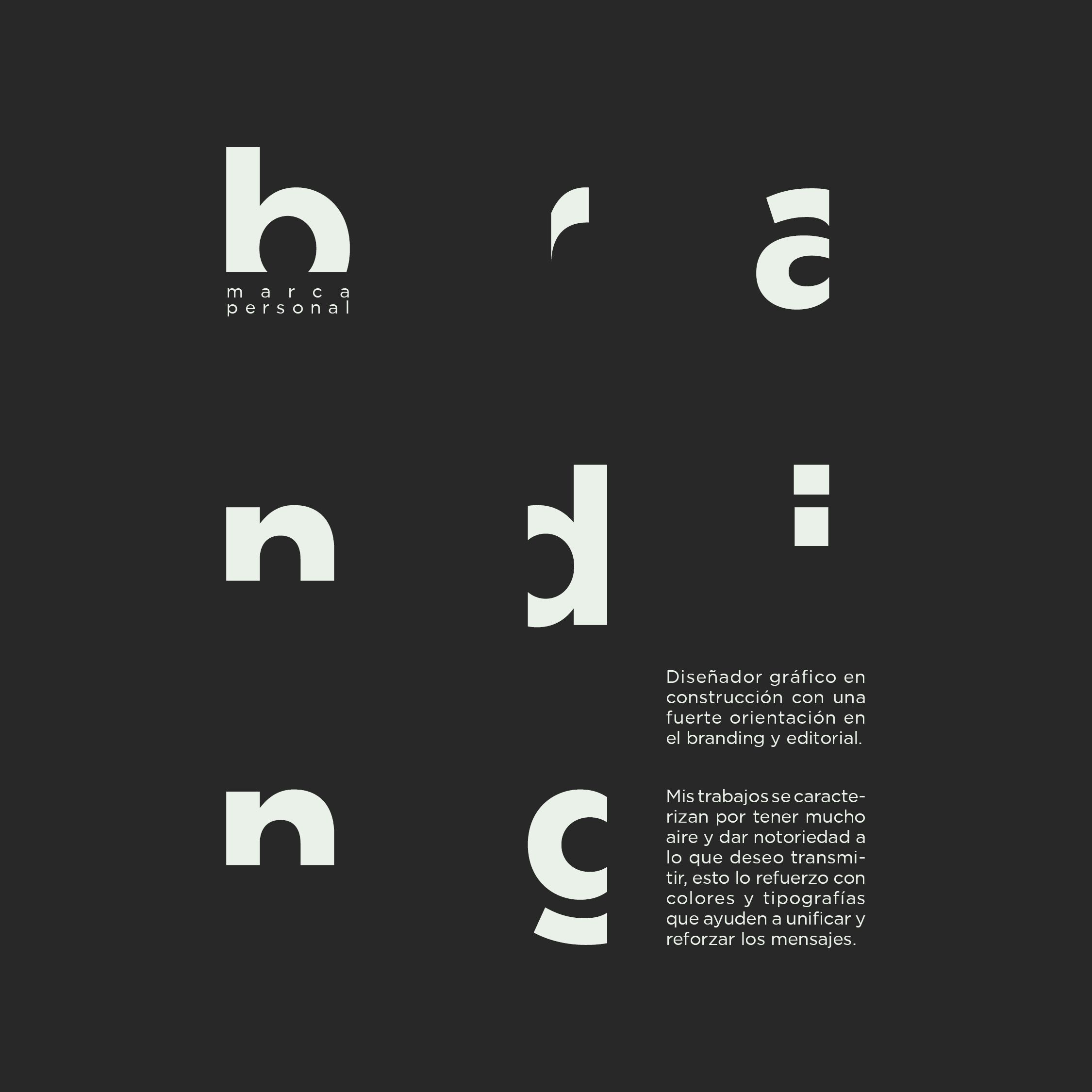 Diseñador gráfico en construcción con una fuerte orientación en el branding y editorial. Mis trabajos se caracterizan por tener mucho aire y dar notoriedad a lo que deseo transmitir, esto lo refuerzo con colores y tipografías que ayuden a unificar y reforzar los mensajes.