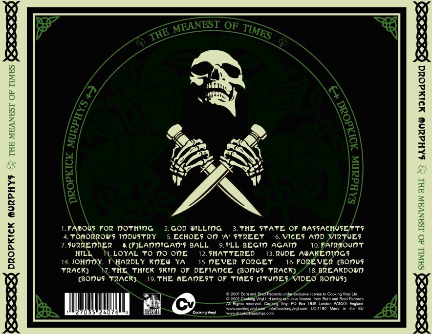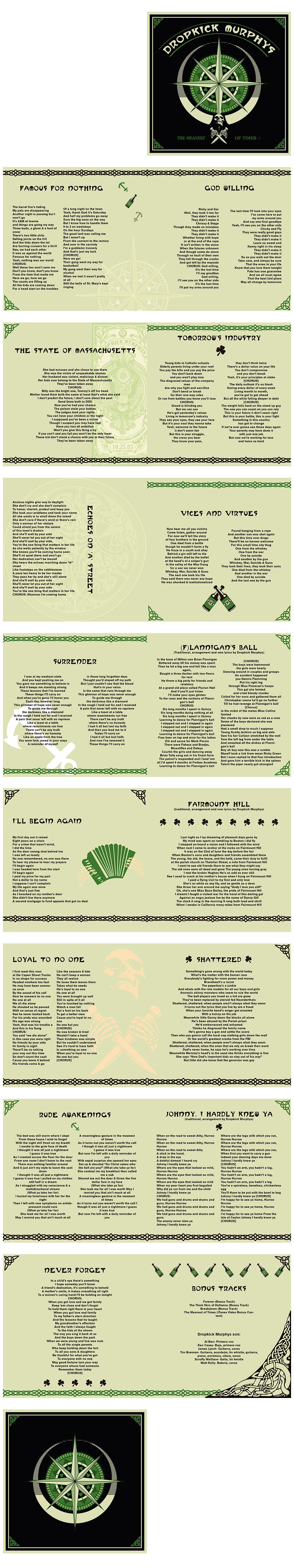 Rediseño del libreto del Album "The meanest of Times" de Dropkick Murphys. Ilustraciones realizadas con Illustrator, maquetación del texto con Indesign.