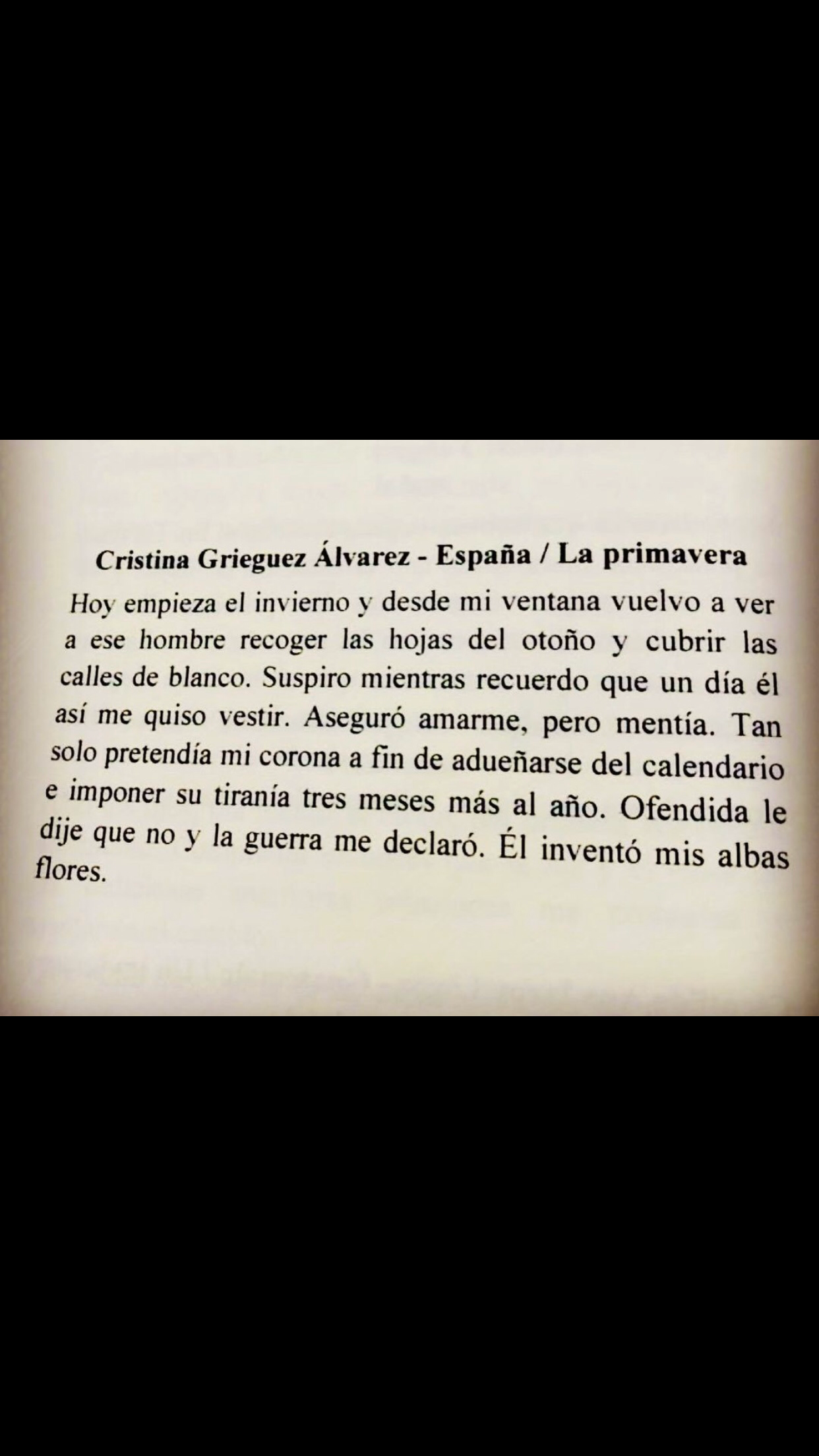 Este fue uno de los primeros microrrelatos que escribí y me publicaron. No gané, pero fue emocionante ver mi nombre en un pequeño libro, junto al de otros escritores. Profesionales o no. Me animó a seguir soñando.