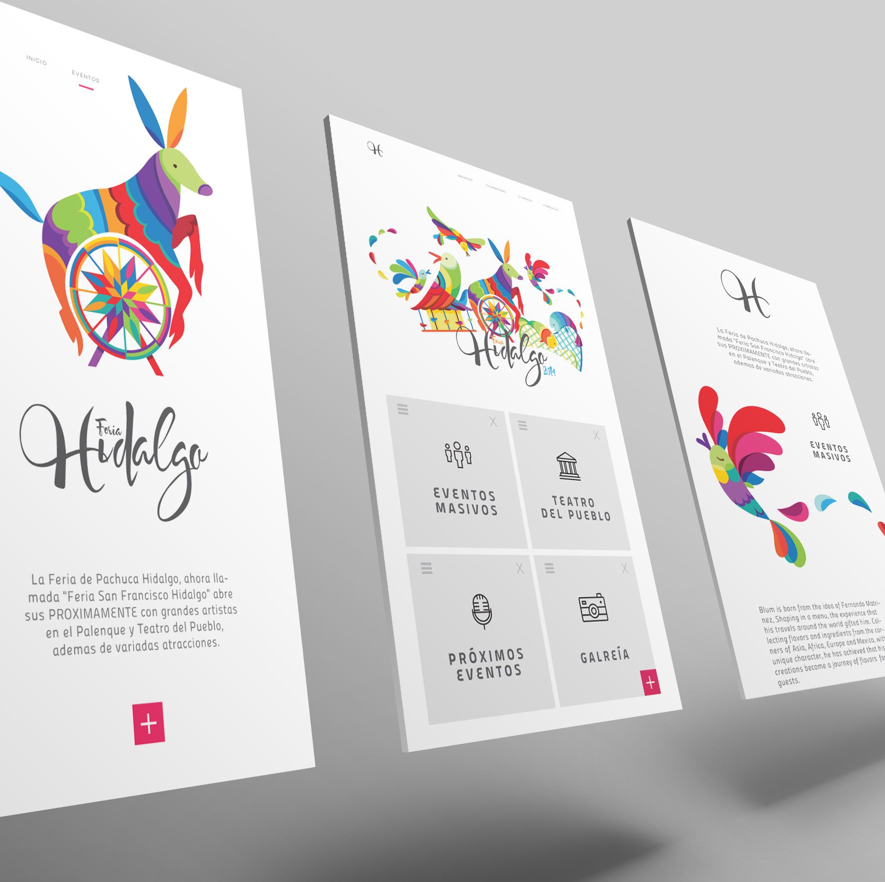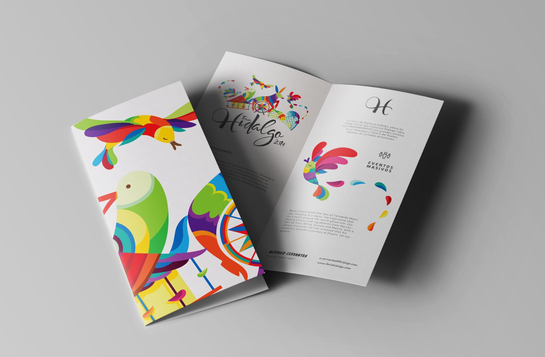 El proyecto fue crear un concepto basado en el bordado Tenango (tradicional del estado de Hidalgo) que une la esencia estética del arte tradicional con elementos contemporáneos, una paleta de colores vibrantes y la alegría única que esta Feria en particular ofrece. Proyecto en colaboración con el excelente ilustrador Alfonso Cervantes (https://www.behance.net/acervantes90). Copyright de Rodrigo Sánchez García, Mariana González Cravioto &