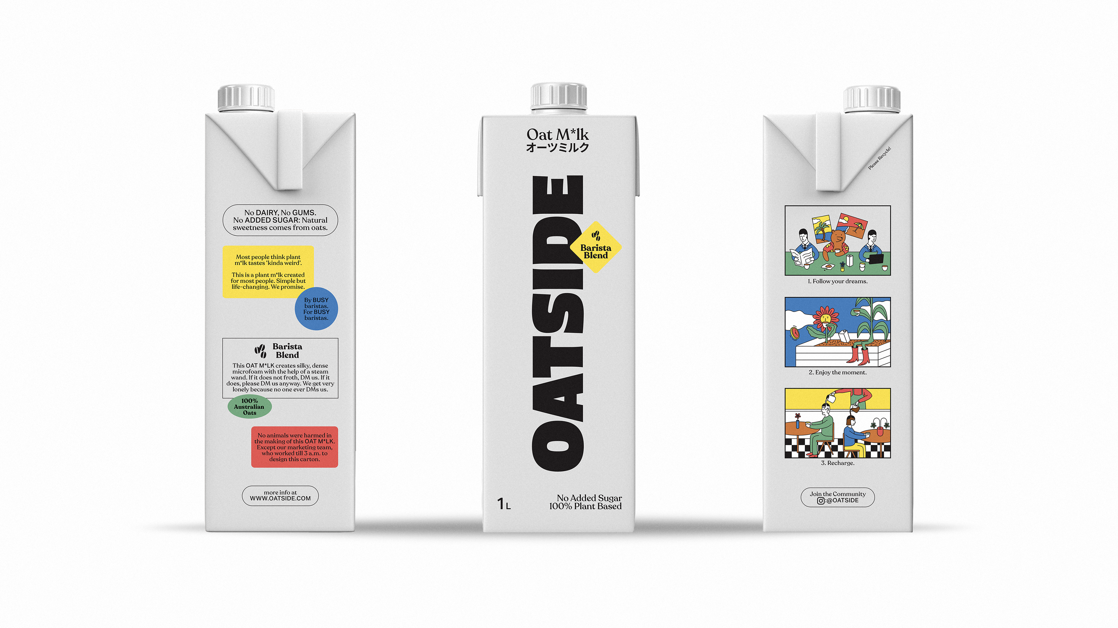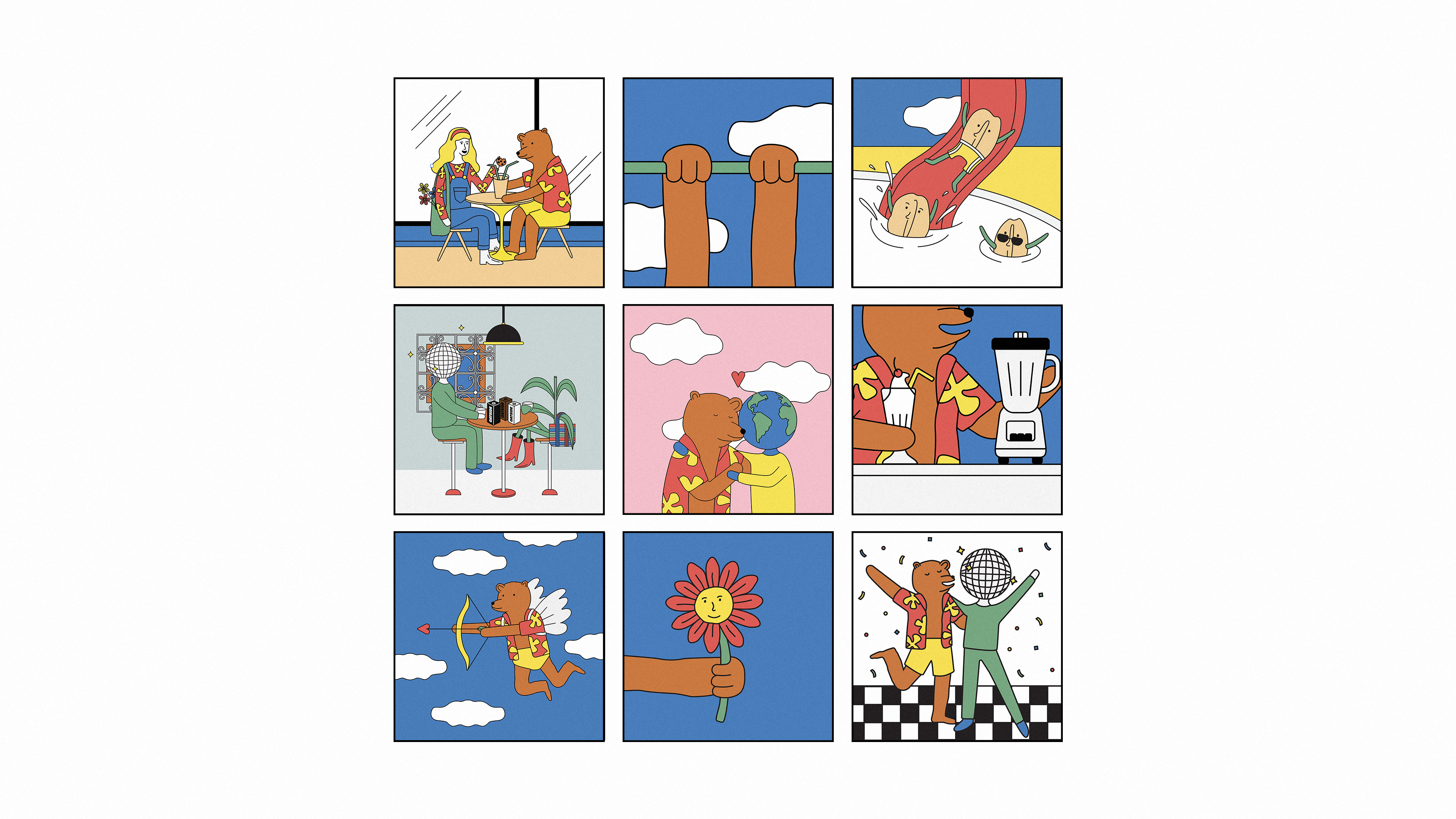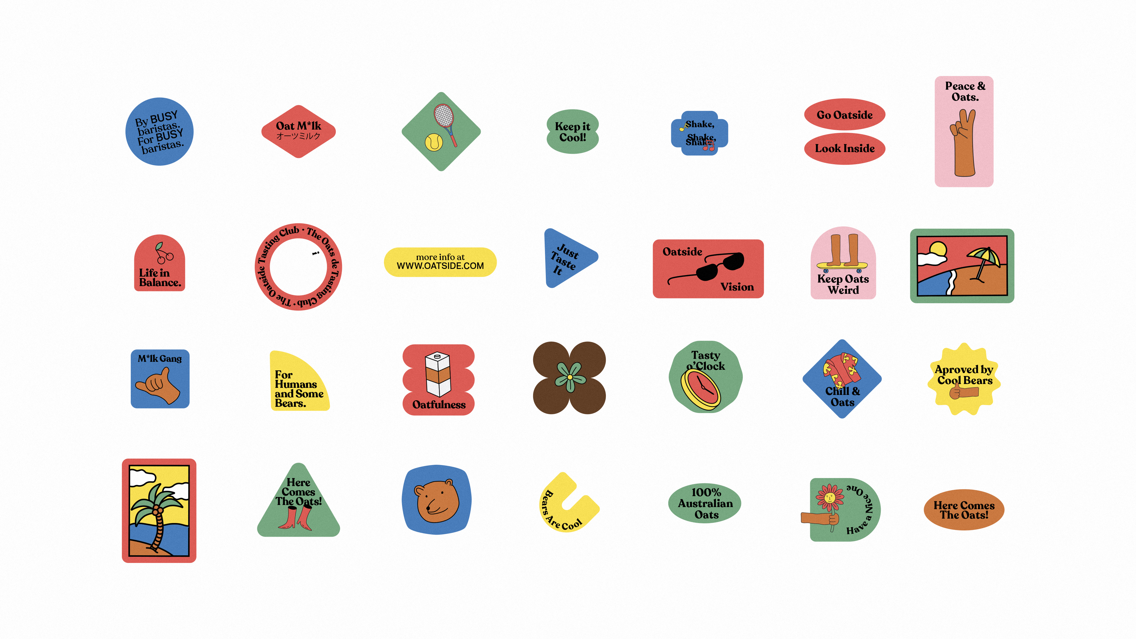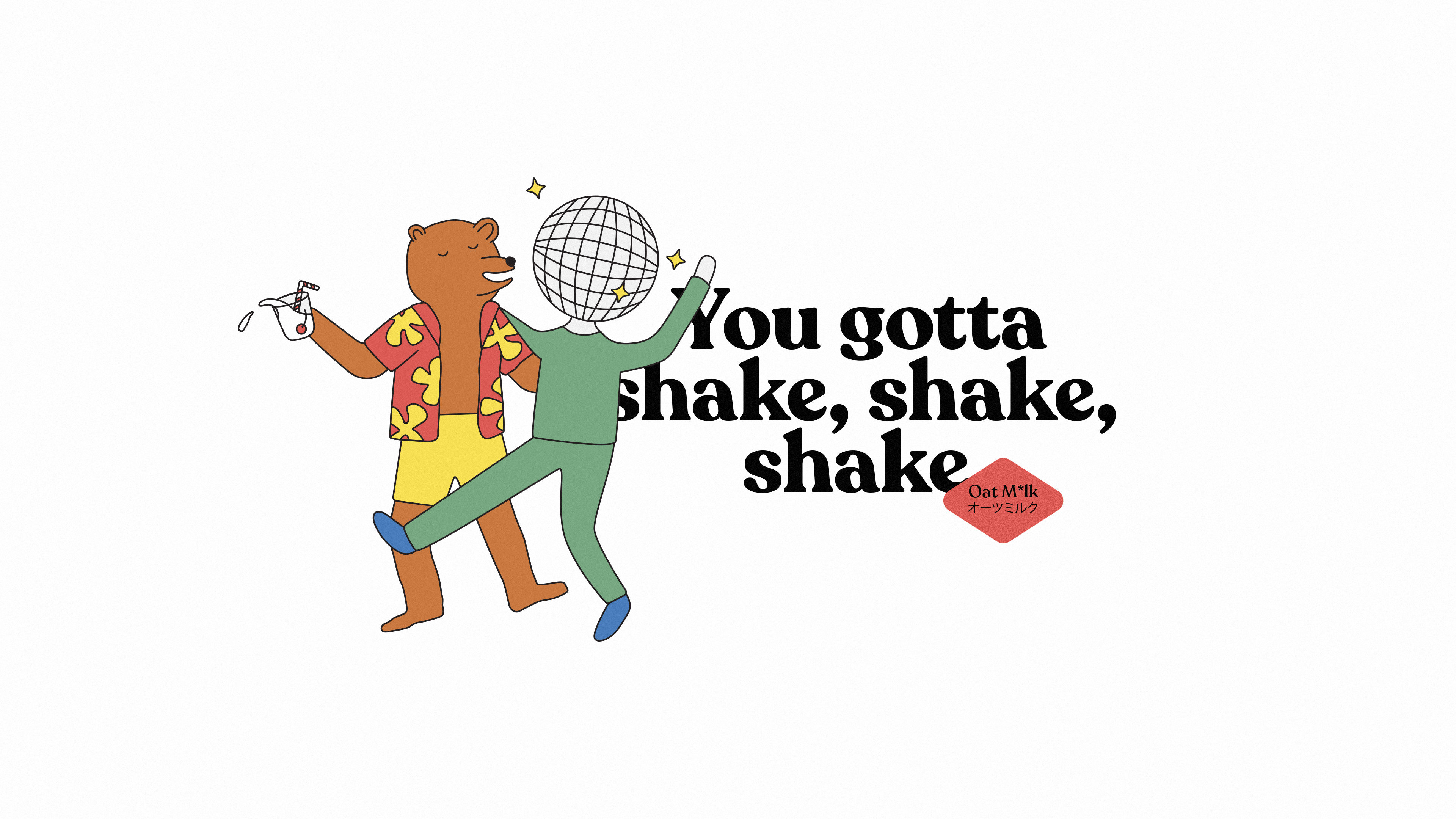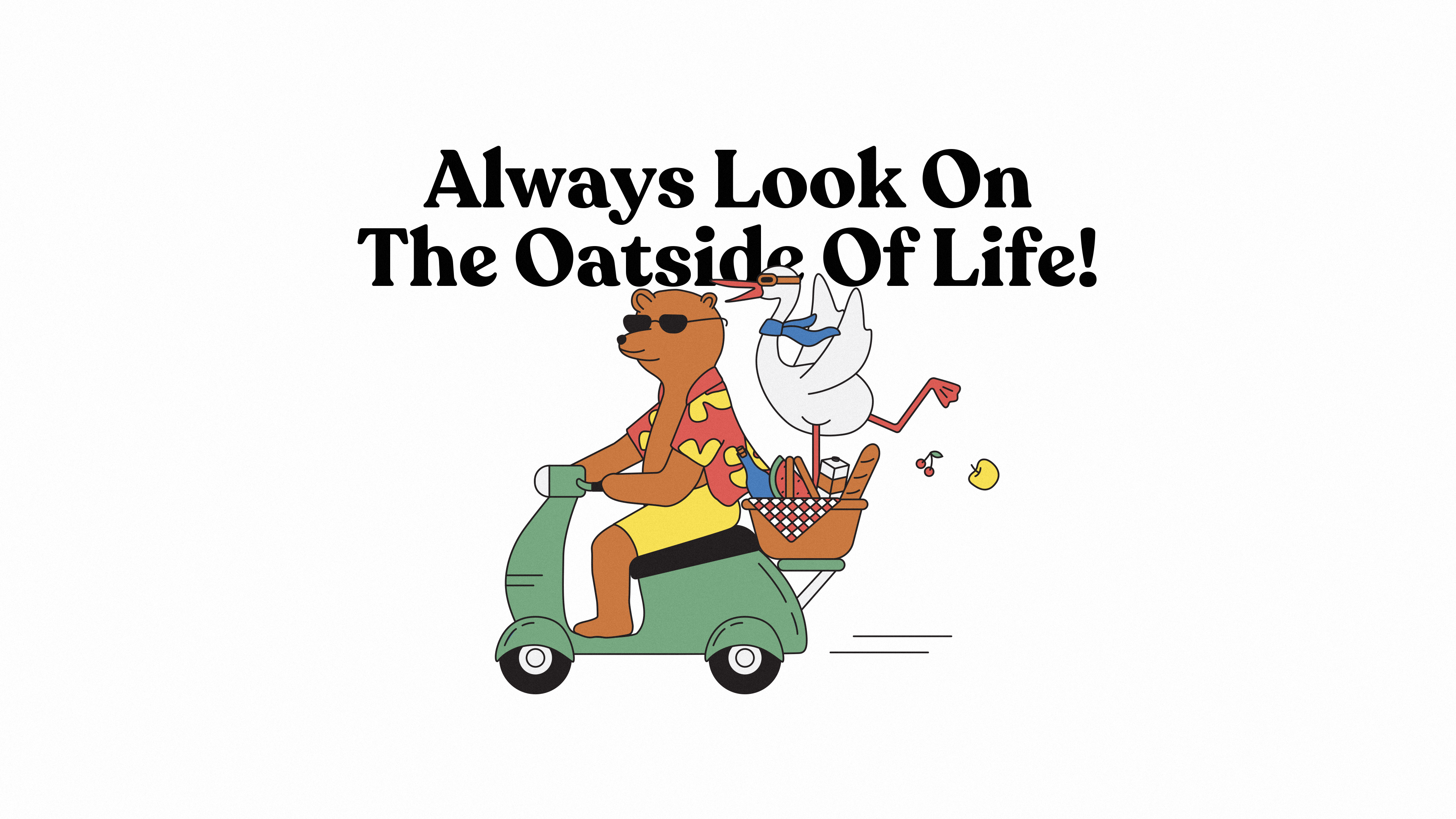 Oatside is a plant-based milk brand focused on offering a specialized, conscious and overall a tasteful drink. Working together closely with the Oatside team, we developed this universe with a main character in the center of it all, a funky and friendly bear that brings you along its fun adventures and shows you another side of life, the Oatside. From the beginning the brand’s playful tone let us explore and play even more each time, there is nothing too crazy for Oatside. From puns, to stickers, to plants with boots, each graphic and illustration has been a joy to create.