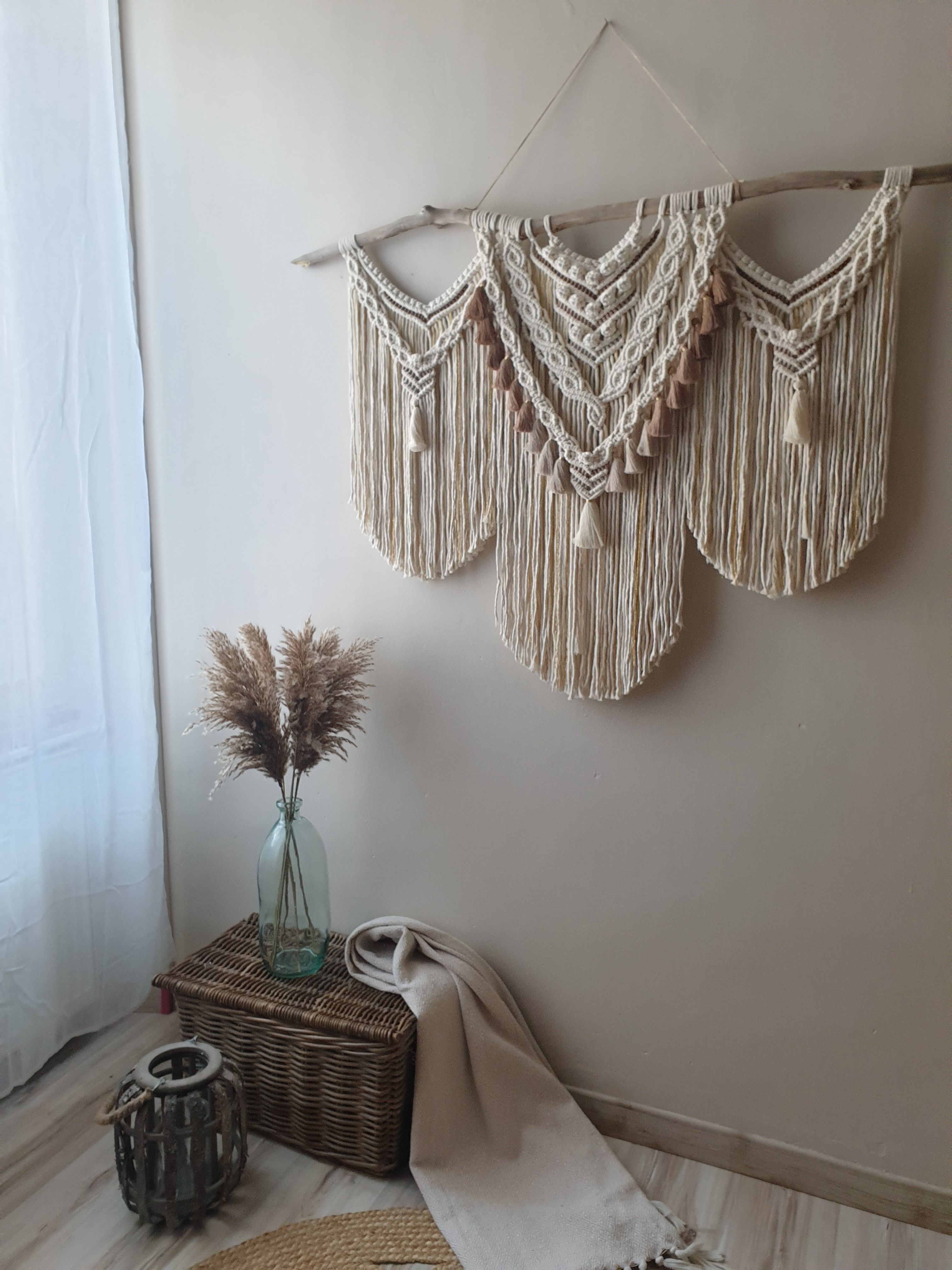 Meistere die Kunst der Boho-Wohnkultur! Lerne Makramee-Knoten, spalte Garn für Federn auf und arbeite verschiedene Materialien ein.