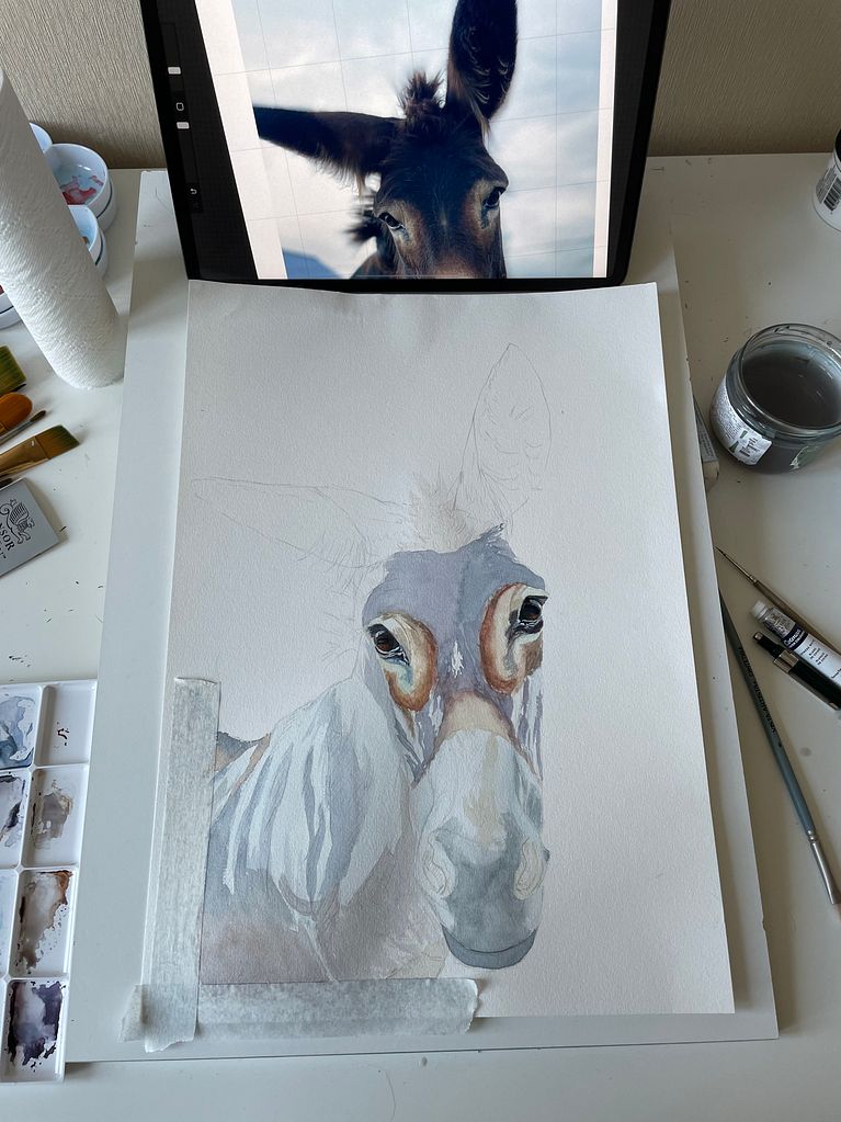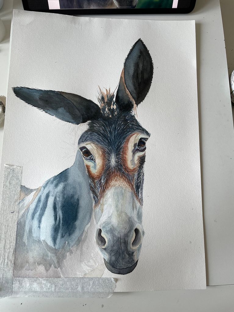 Ihre Arbeit ist sehr schön. Ich liebte die sanften Farben und der Esel war sehr ausdrucksstark.