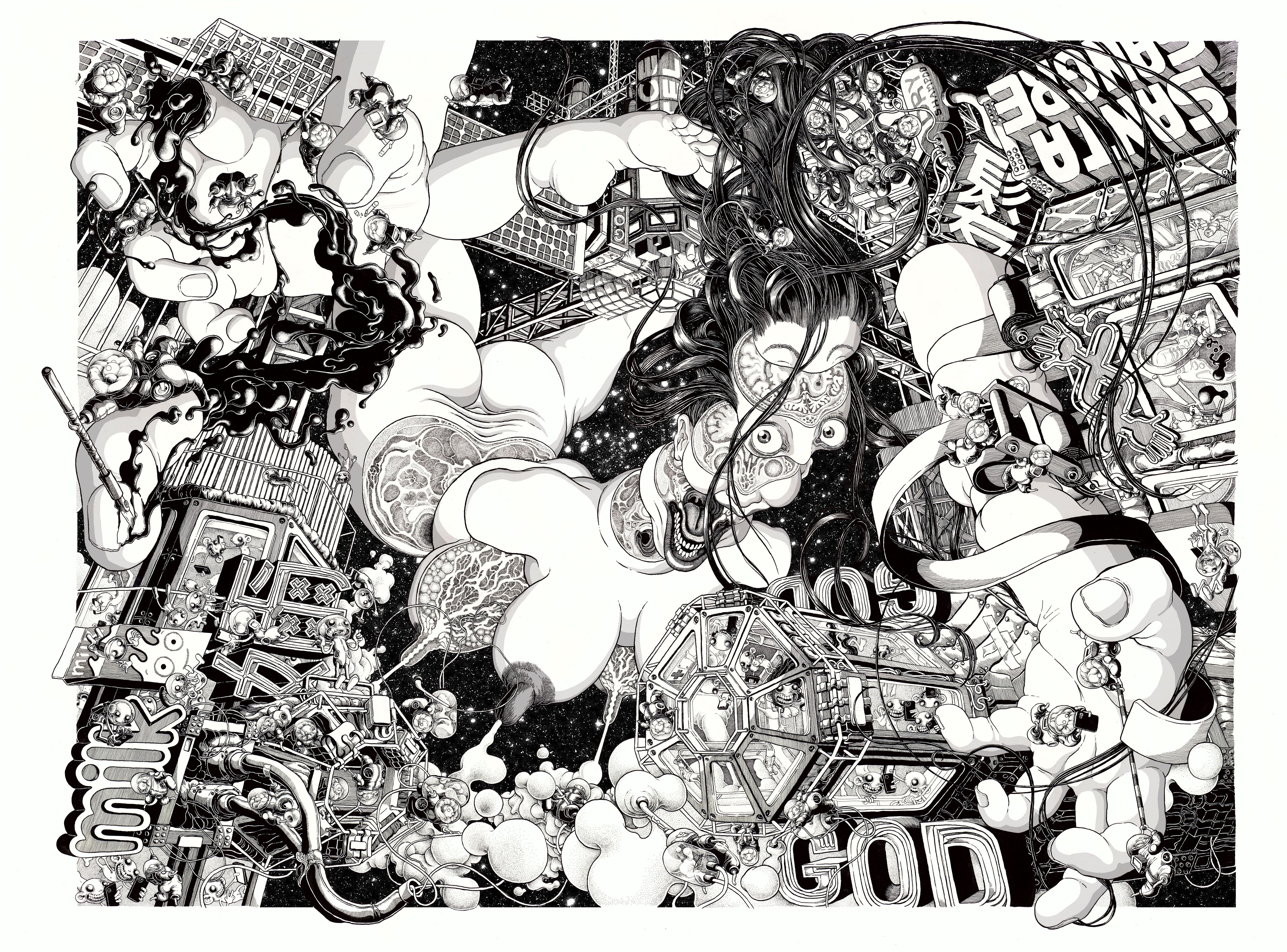 (M)other is a big format drawing about the promise of resource extraction in space.