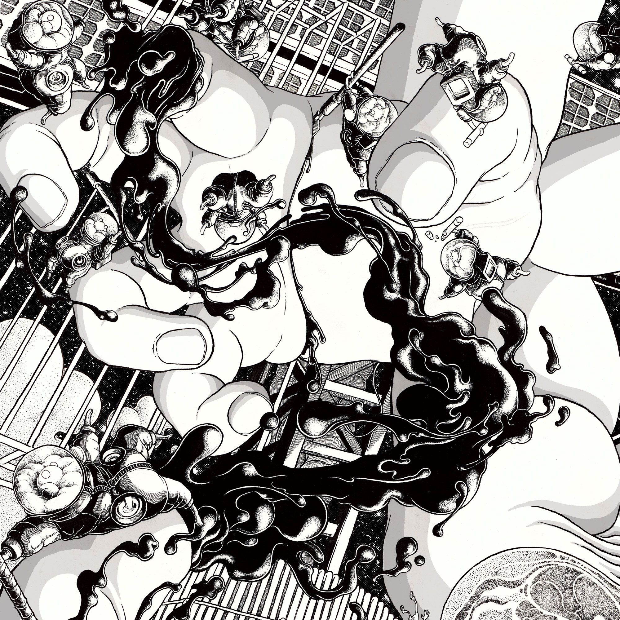 Topoids in space suits make sure to tighten the blood extraction module to the celestial body’s arm. Inside the module, scientists work hard to successfully extract every drop without any leaks.