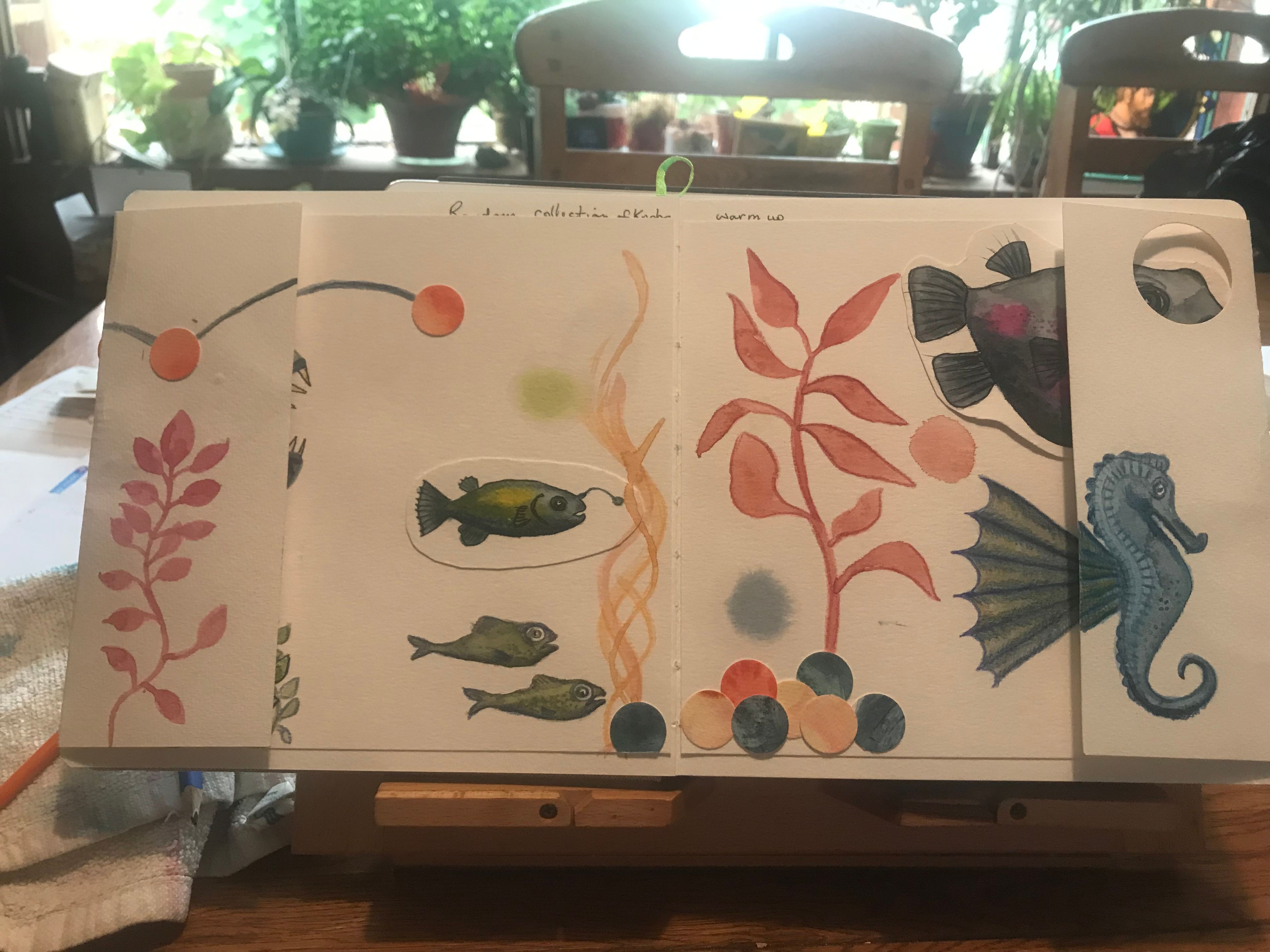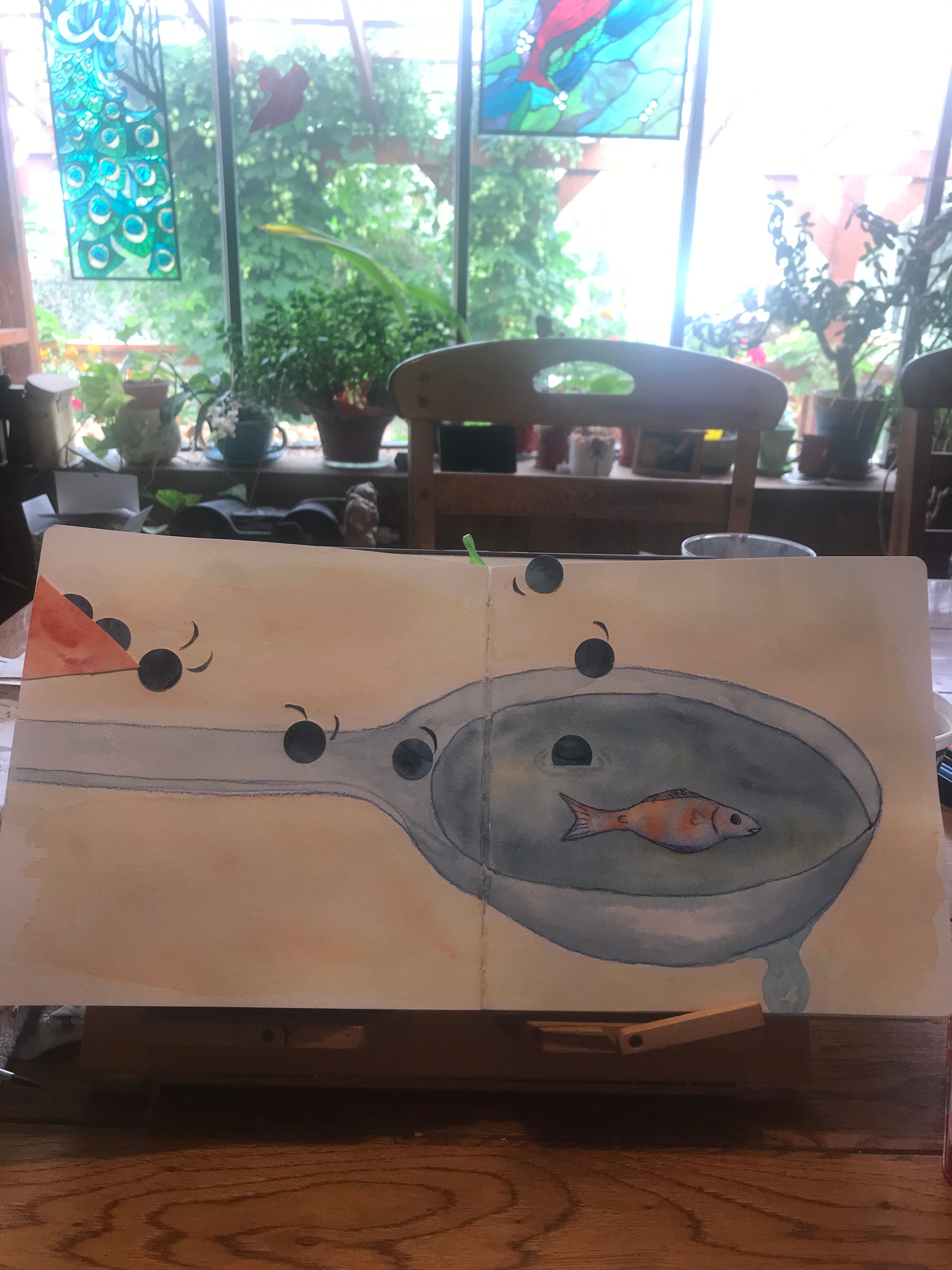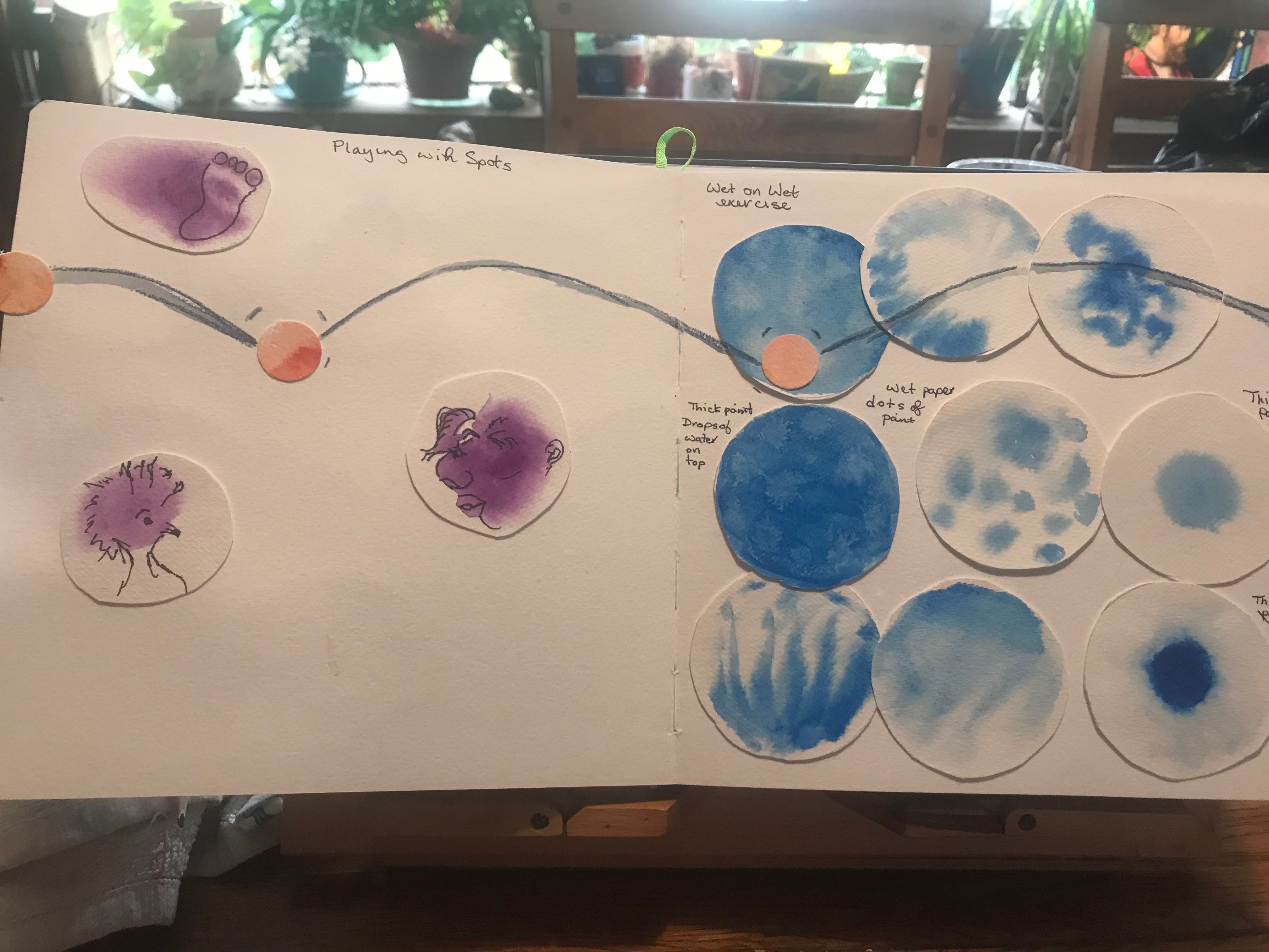 The beginners watercolor course is really fun. I did many of the projects just like the instructor did them and was not too imaginative as I was practicing the techniques and getting a feel for them. I have a long way to go but it is enjoyable as well as challenging. The sketch book idea is really great where every page is somehow connected to the previous which creates a story or at least a connection or cohesion to the book.