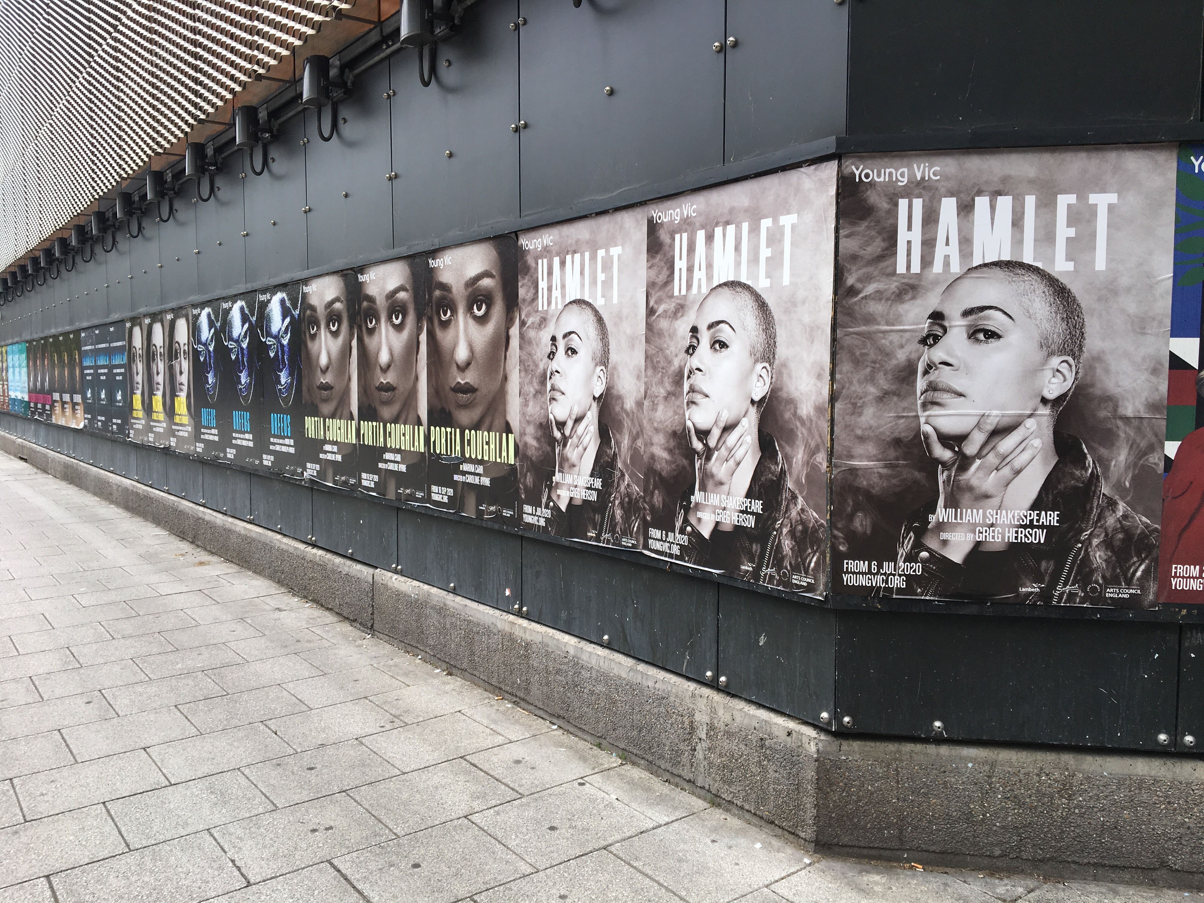 Inspired by famous music album covers and by the iconic image of Hamlet holding a skull during the ‘To be or not to be’ speech, the image position Cush Jumbo as a new kind of Hamlet for this generation.