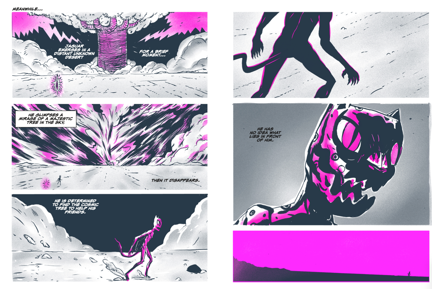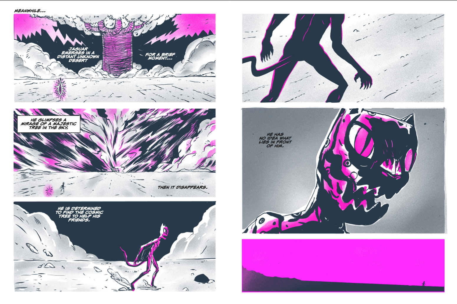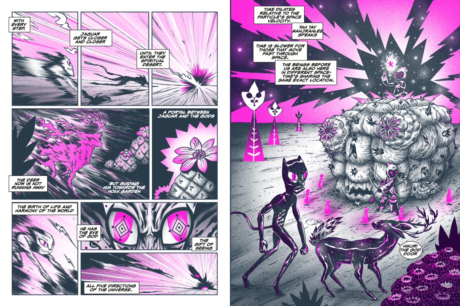 In Starseeds 3, Renató joins the Starseeds, Crystal and Jaguar, to save their friend, Indigo. As Renató dives deep into Indigo’s soul, Crystal defends and protects their helpless bodies from the Illuminati while Jaguar must purify his soul and energy using ancient medicine to tap into the cosmic axis tree that will save their friend. When Renato meets their mortal enemy, the Lizard King, the truth about reality is revealed, altering the course of the Starseeds’ lives as they face their greatest challenge. Meanwhile, the Beautiful Dreamers — Arco, Iris, and Hadron —travel inside the Black Women Mountain to traverse a new dimension of human thought: the Noosphere!