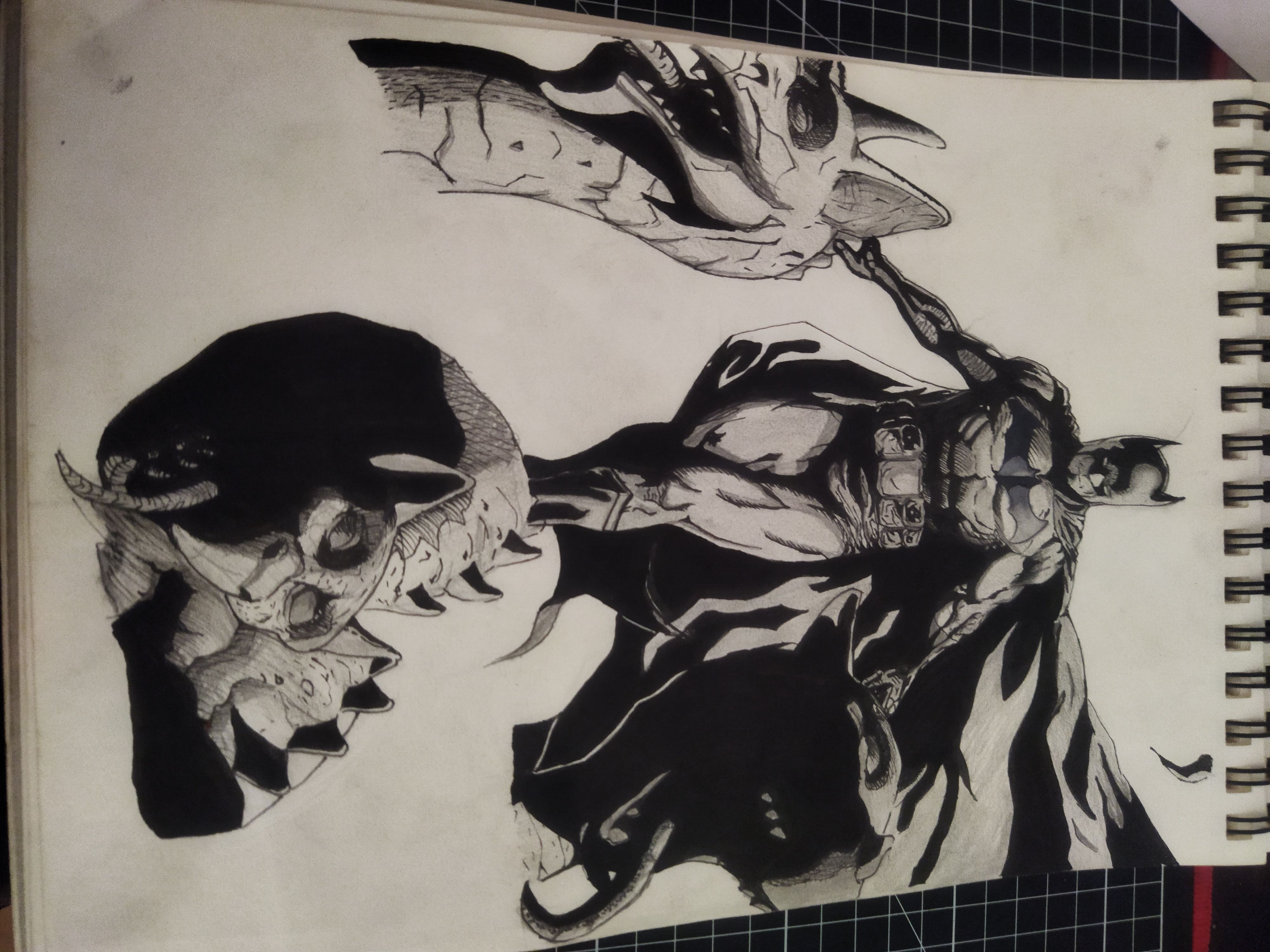 Batman ist mein Lieblingscharakter, deshalb habe ich mich entschieden, ihn in seinen Händen und Füßen zu zeichnen, er hat die Köpfe einiger Wasserspeier.