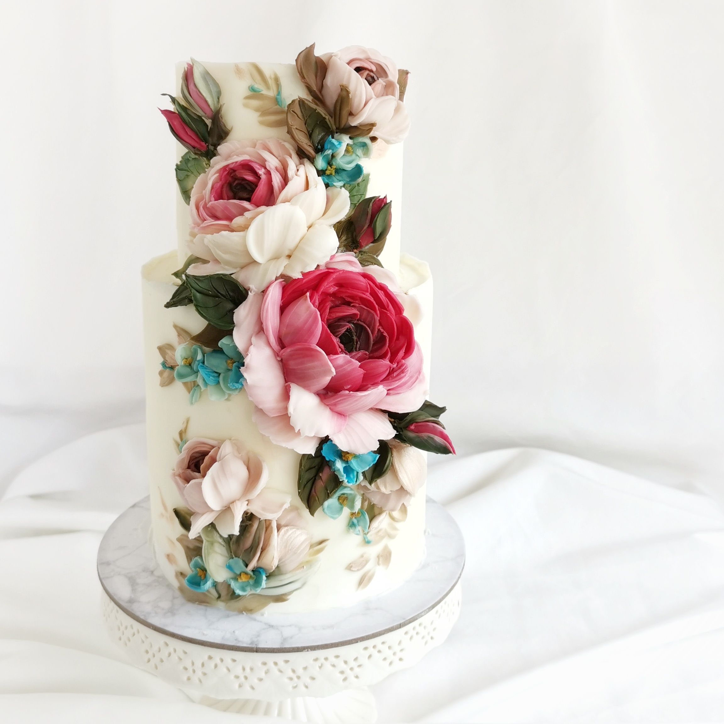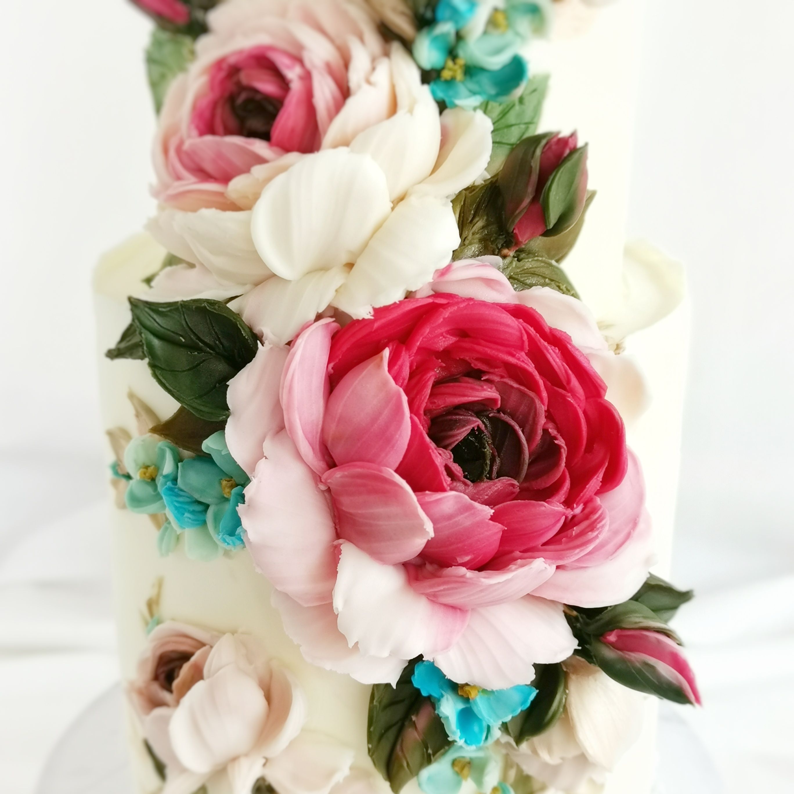 A lot of petals one by one assembles for one rose, that's all of the petals made directly on the cake.