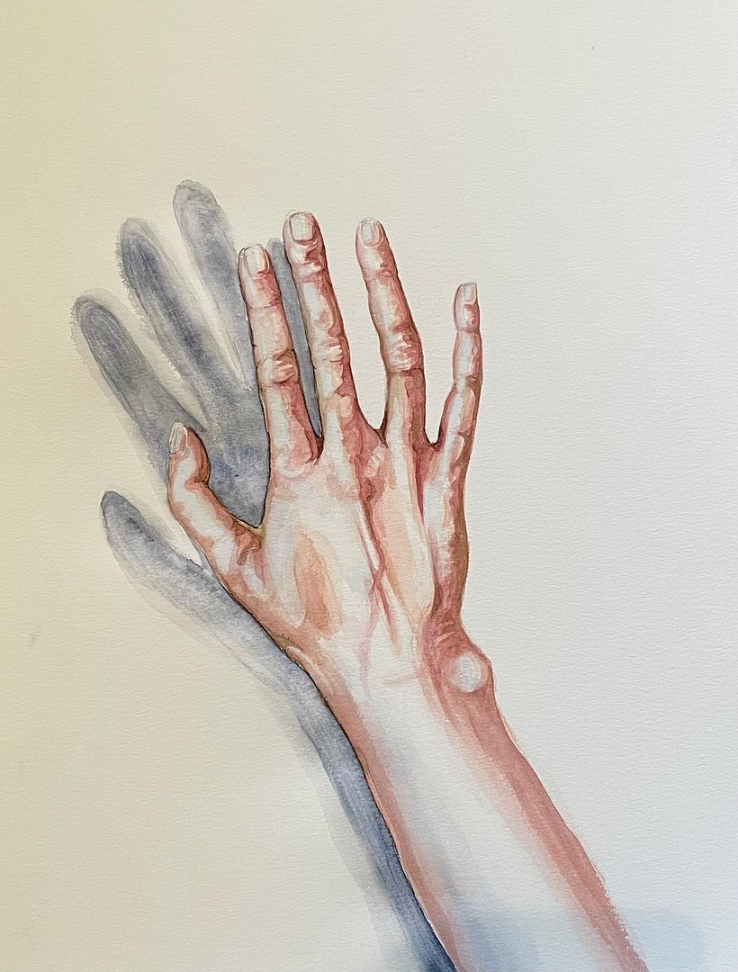The story of this hand, is the story of my right hand. I am a gold-&silversmith master since 30 years. I spend my days in a workshop and work nonstop with my hands. My right hand underwent already 3 surgeries, has arthrosis, morning stiffness and begins to deform on several joints. The clumsy shadow on the last picture represents how huge and swollen my hand feels in the morning. Nevertheless....I love her and her steady presence and serving me so well in (craftswoman's) life. Thank you for your teaching, Sol! I will keep on practice!!!