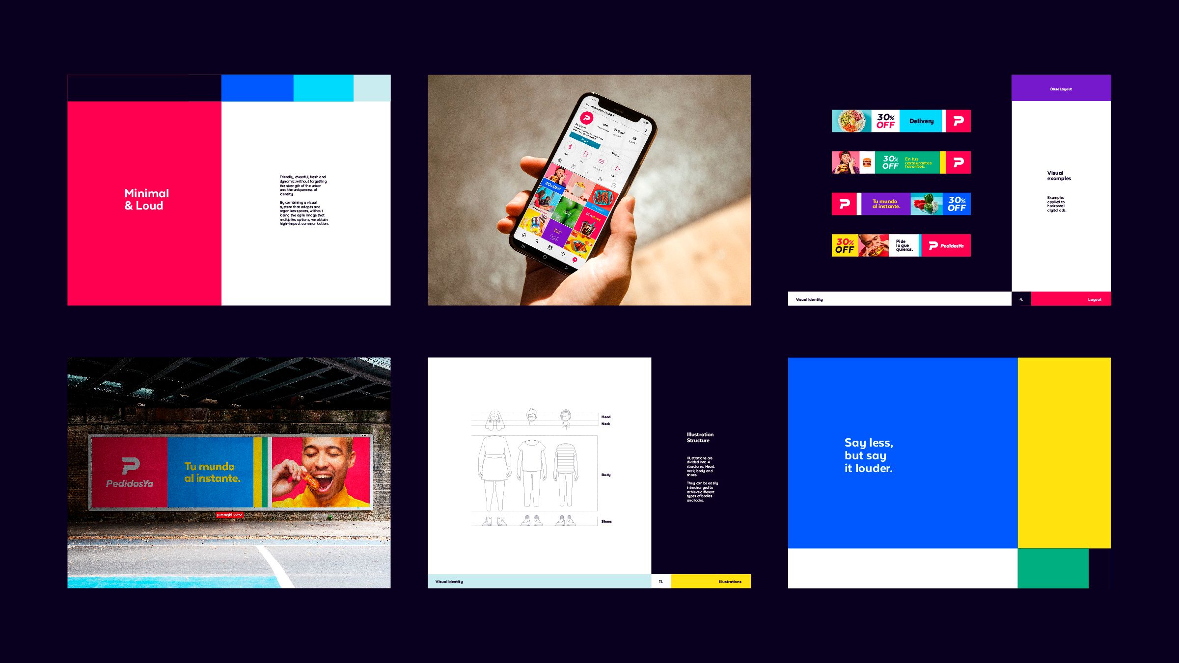 We want to share with you the proposal we developed for the restyling of Pedidos Ya Latam. From the initial conception of the new brand concept "Minimal and LOUD" to the creation of a detailed brand book that explains how each visual element embodies this concept. With this brand guideline, incredibly talented people were able to join the project, contributing to every detail and making this outcome possible. Thanks to everyone who was part of this challenge, we had a lot of fun working on it!