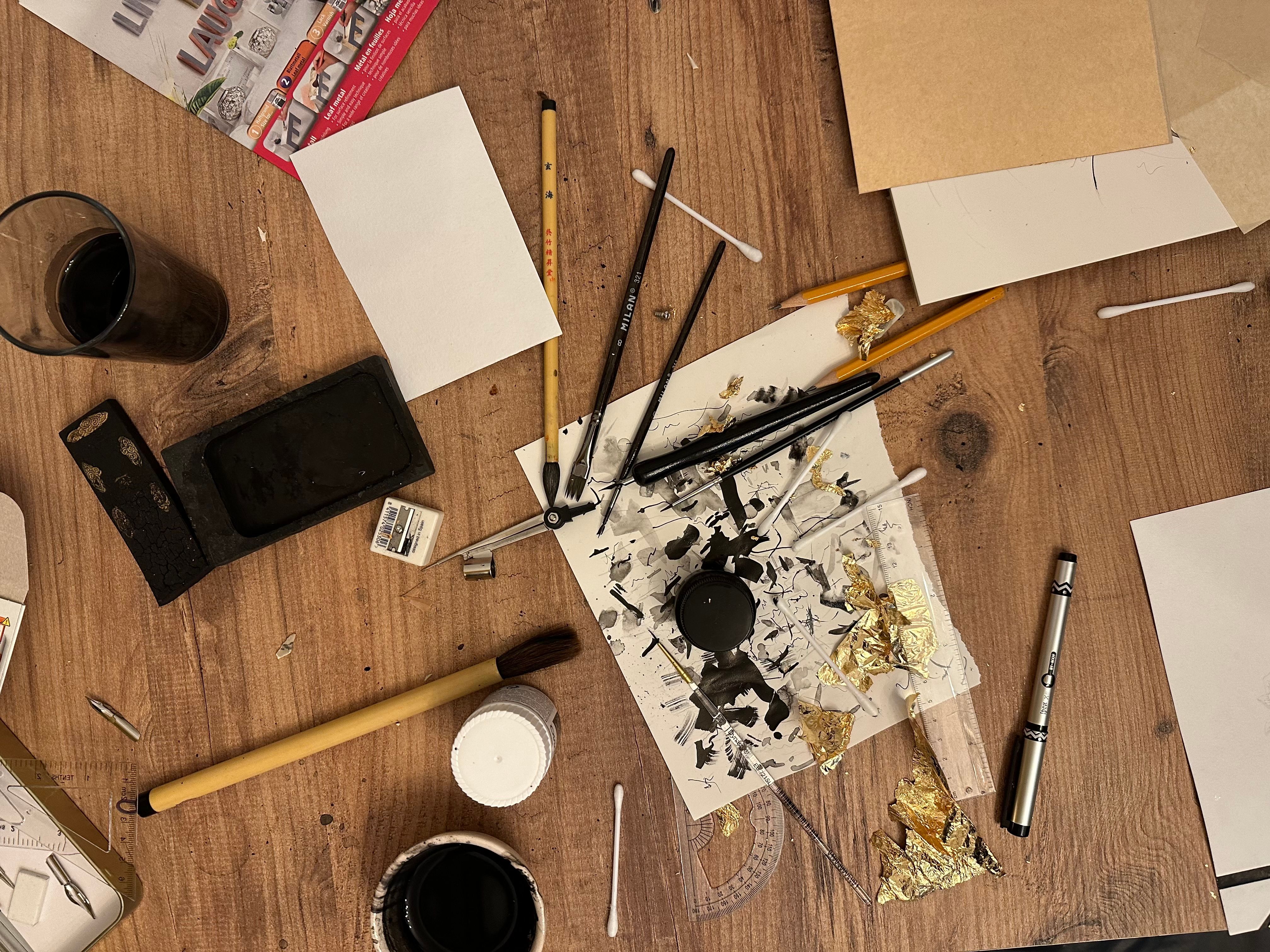 It was my first experience with dip pens, and I’m deeply impressed. Maybe someway I liked it more than drawing with brushes because pens give you more control. In the end I realized that gold cannot be scanned so I could only take some photos with my phone.