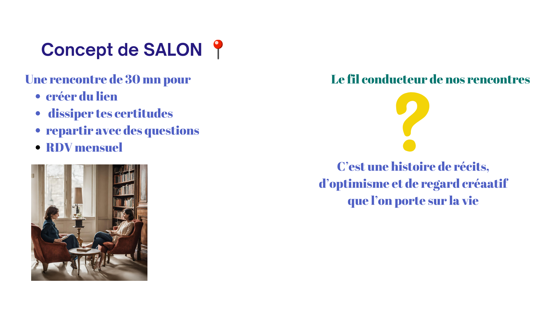 Je pense aux entrepreneurs allant de salons en salons et qui doivent se faire une place dans un agenda…ils se connecteront depuis leur salon à eux pour se brancher à mon invité.