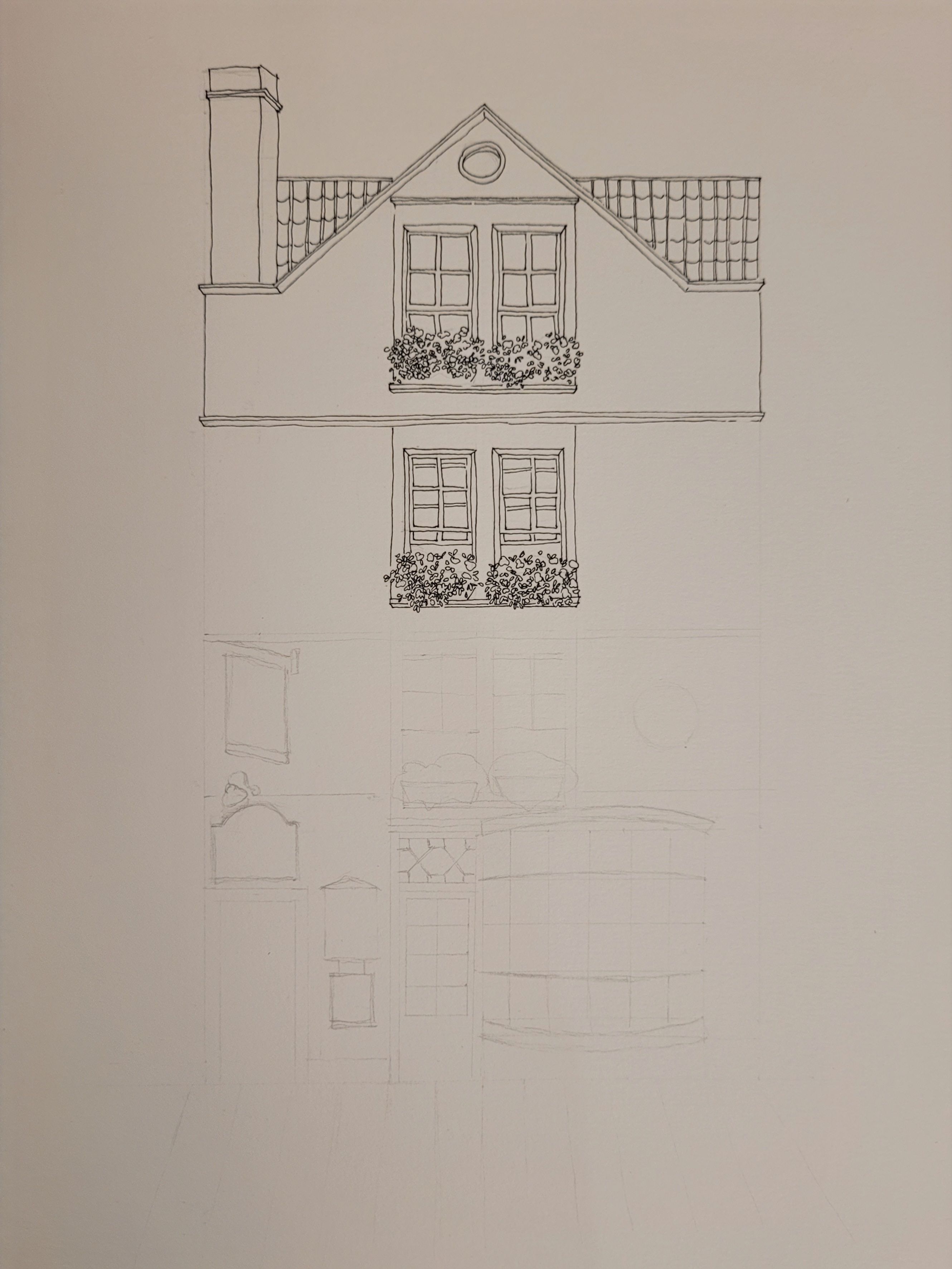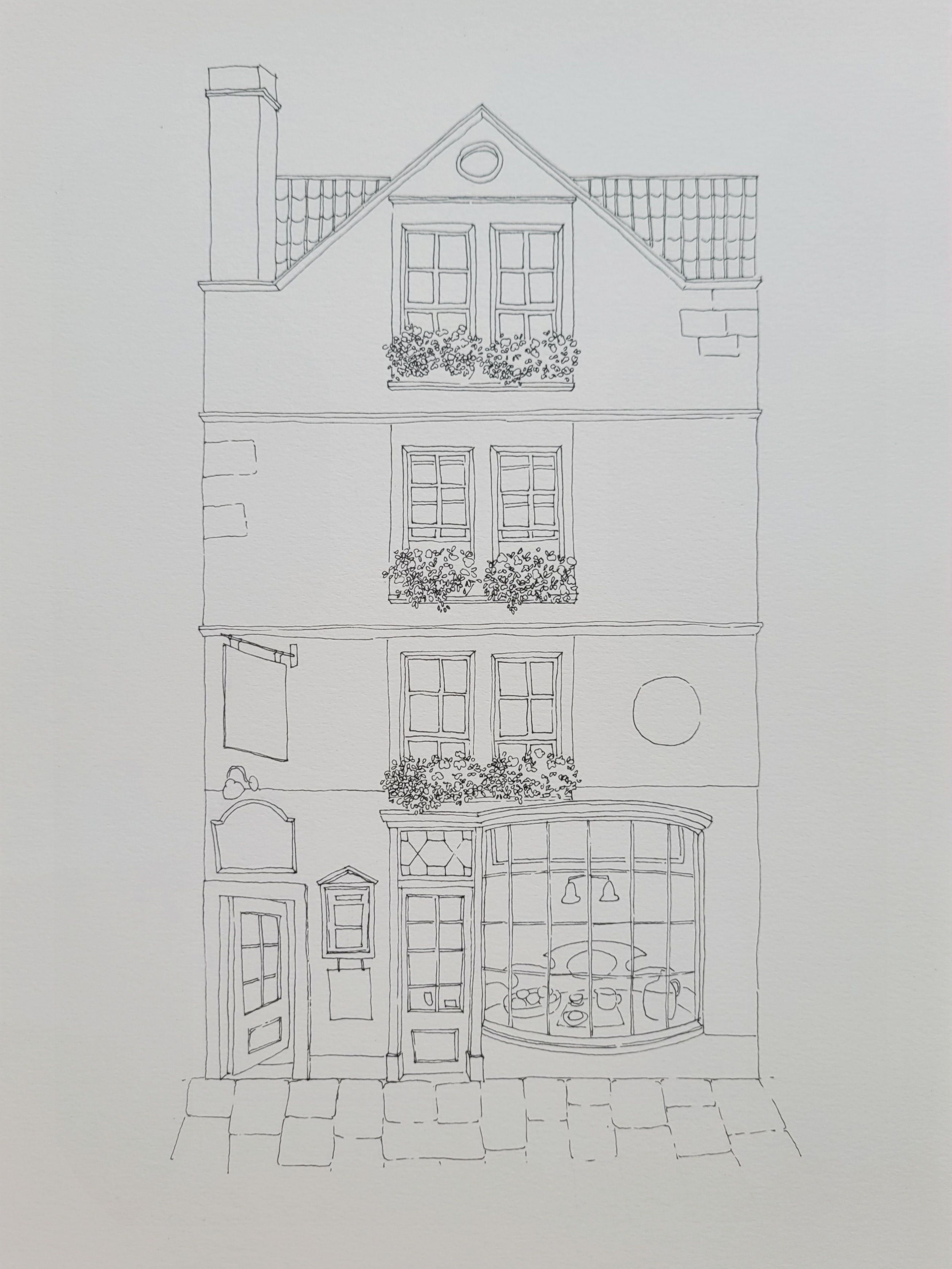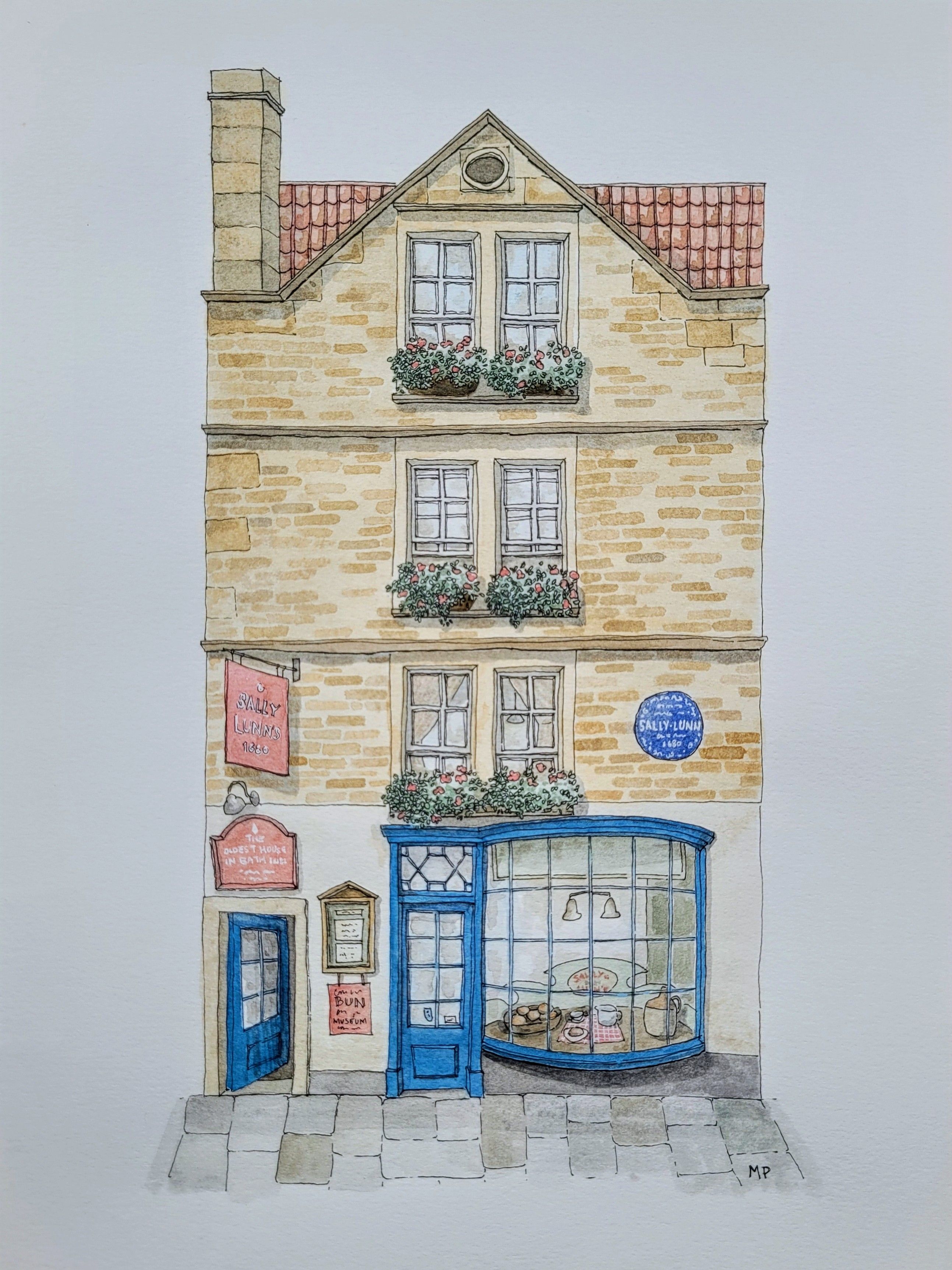 Para meu projeto final, escolhi como referência um lugar que visitei em 2017, numa viagem à Inglaterra. Está localizado na cidade histórica de Bath e se chama "Sally Lunn's Eating House". É uma das casas mais antigas da cidade, sendo que o restaurante existe desde 1680! É uma memória pela qual tenho muito carinho e foi muito especial registrá-la nesse projeto! Achei que o resultado final da aquarela não ficou perfeito, mas espero melhorar com o tempo!