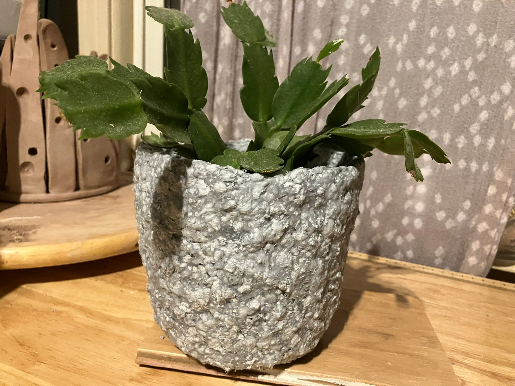 Here is the first pot I ever made from paper pulp (following the course instructions). I enjoyed the whole process from the very beginning. I really struggled with separating the whole thing from the pitcher that served as a mold, but all the mistakes I made are my additional "lessons learned."