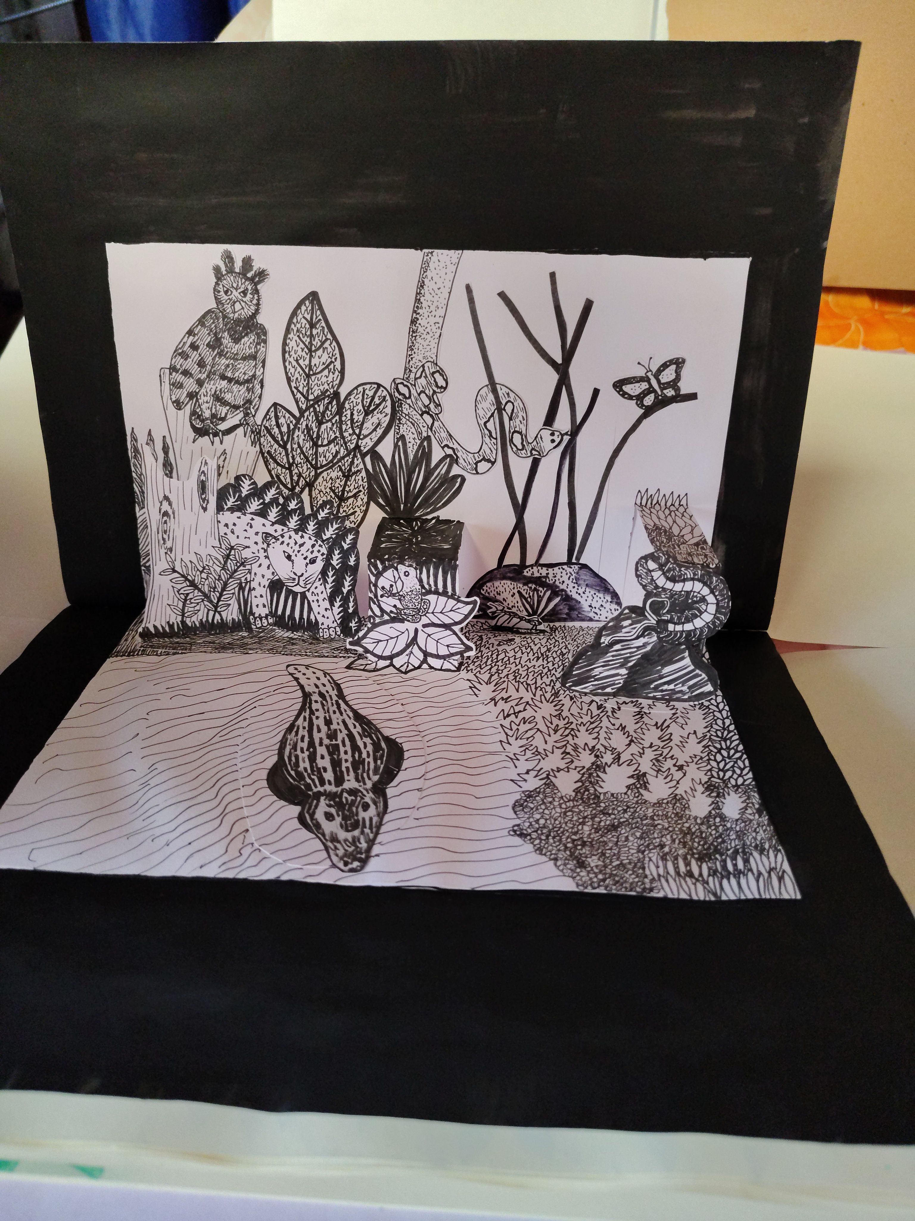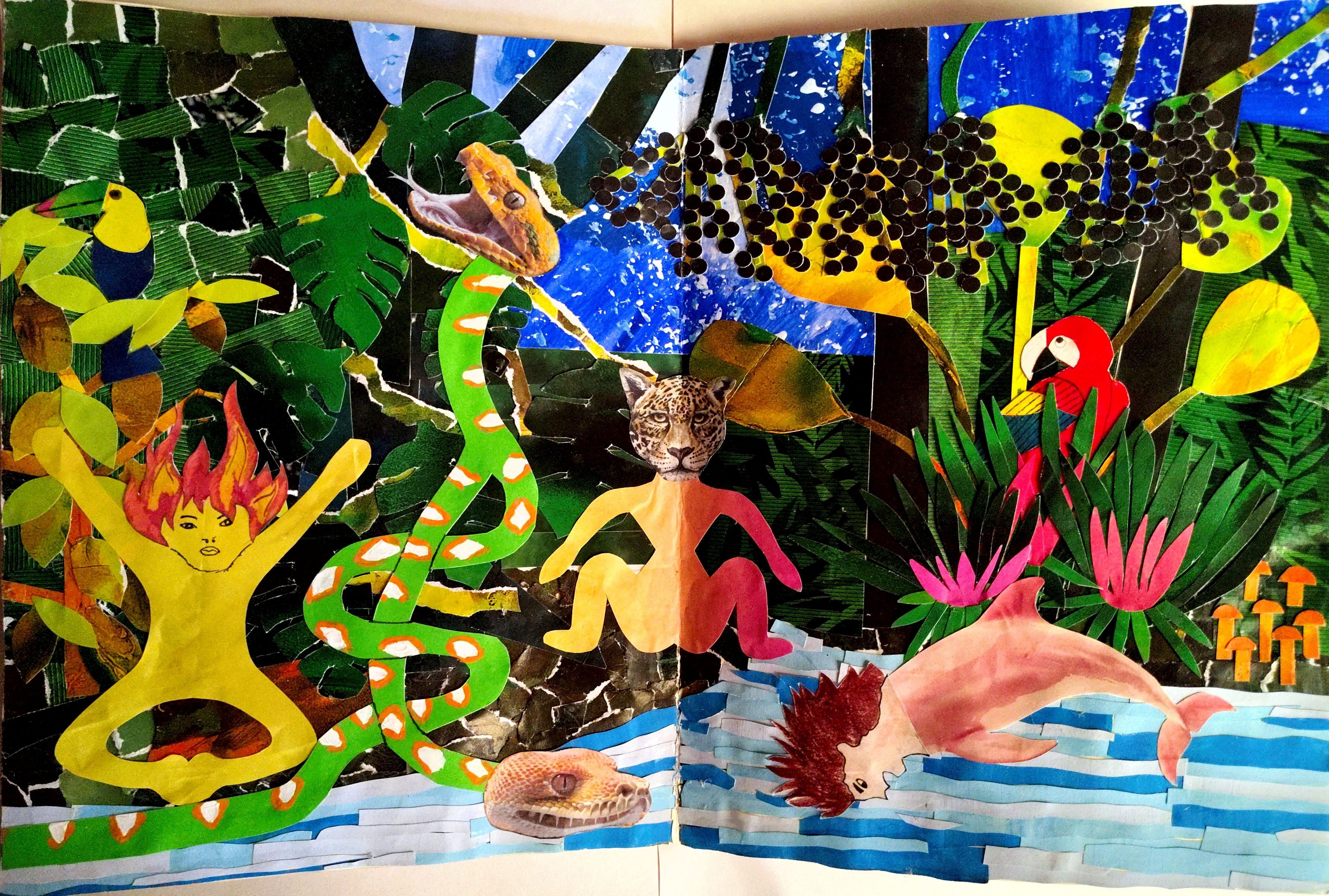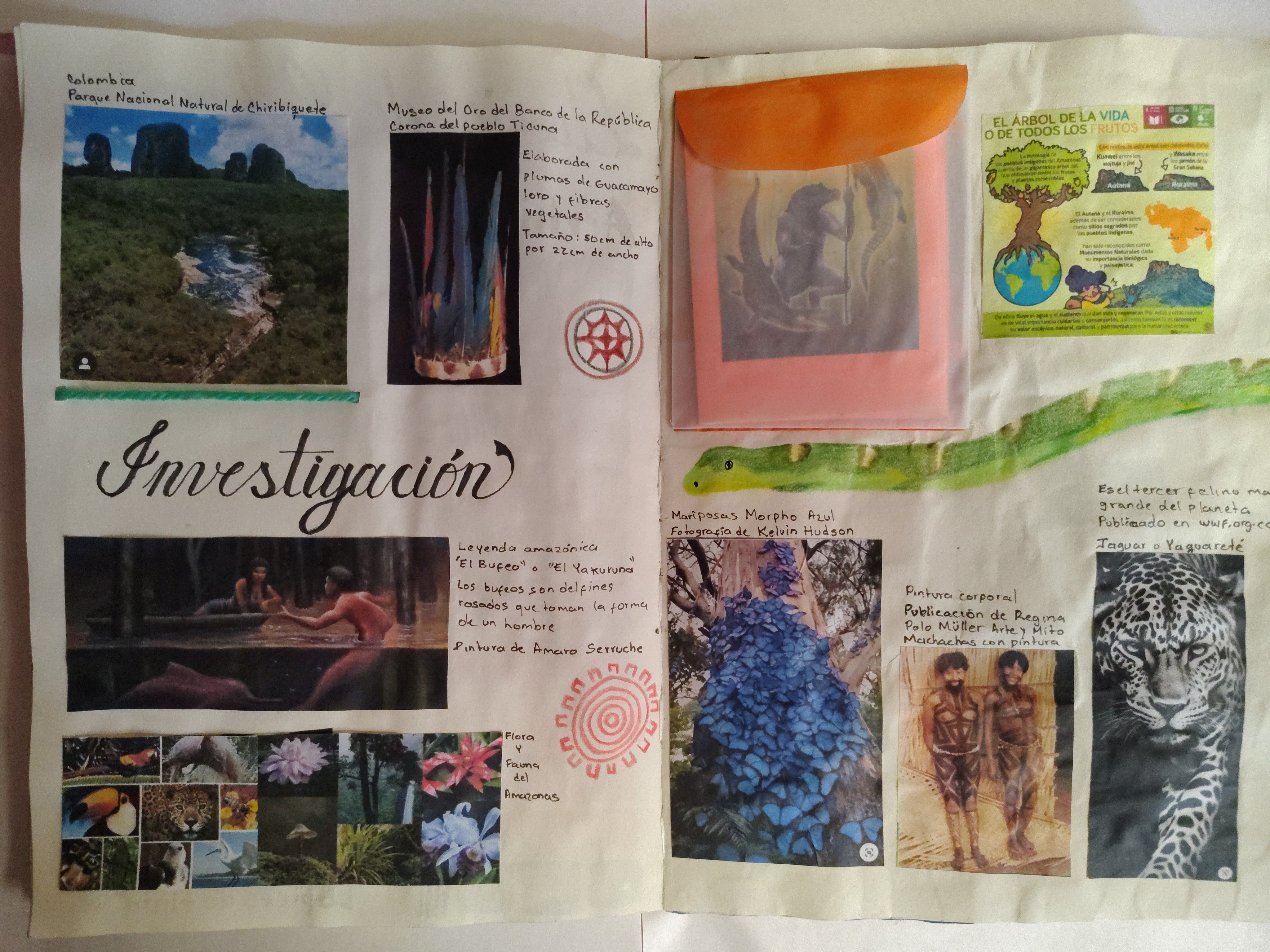 A través de cada página encontraremos representada la biodiversidad amazónica: Flora, Fauna y Comunidad, haciendo uso de diferentes técnicas y materiales