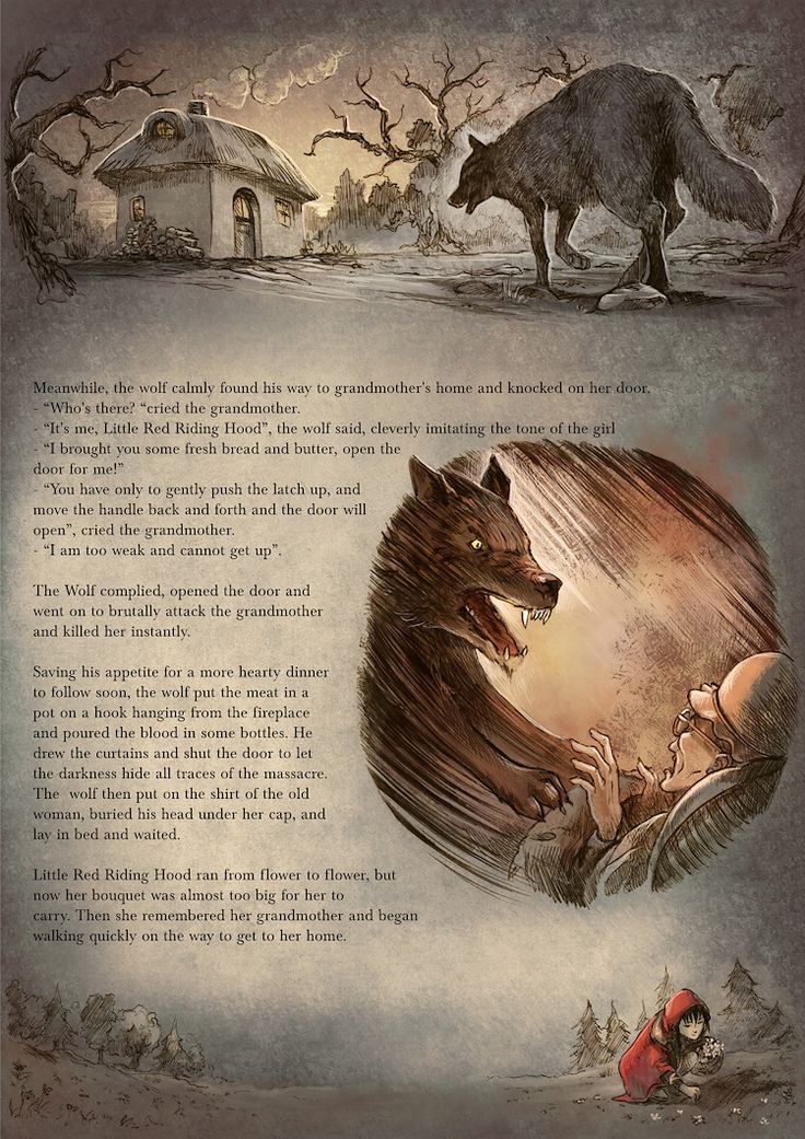 Utilicé el cuento original de Caperucita Roja, investigué en internet sobre lobos, hombres lobos como mito, leyenda y personaje folclorico de fantasía y terror