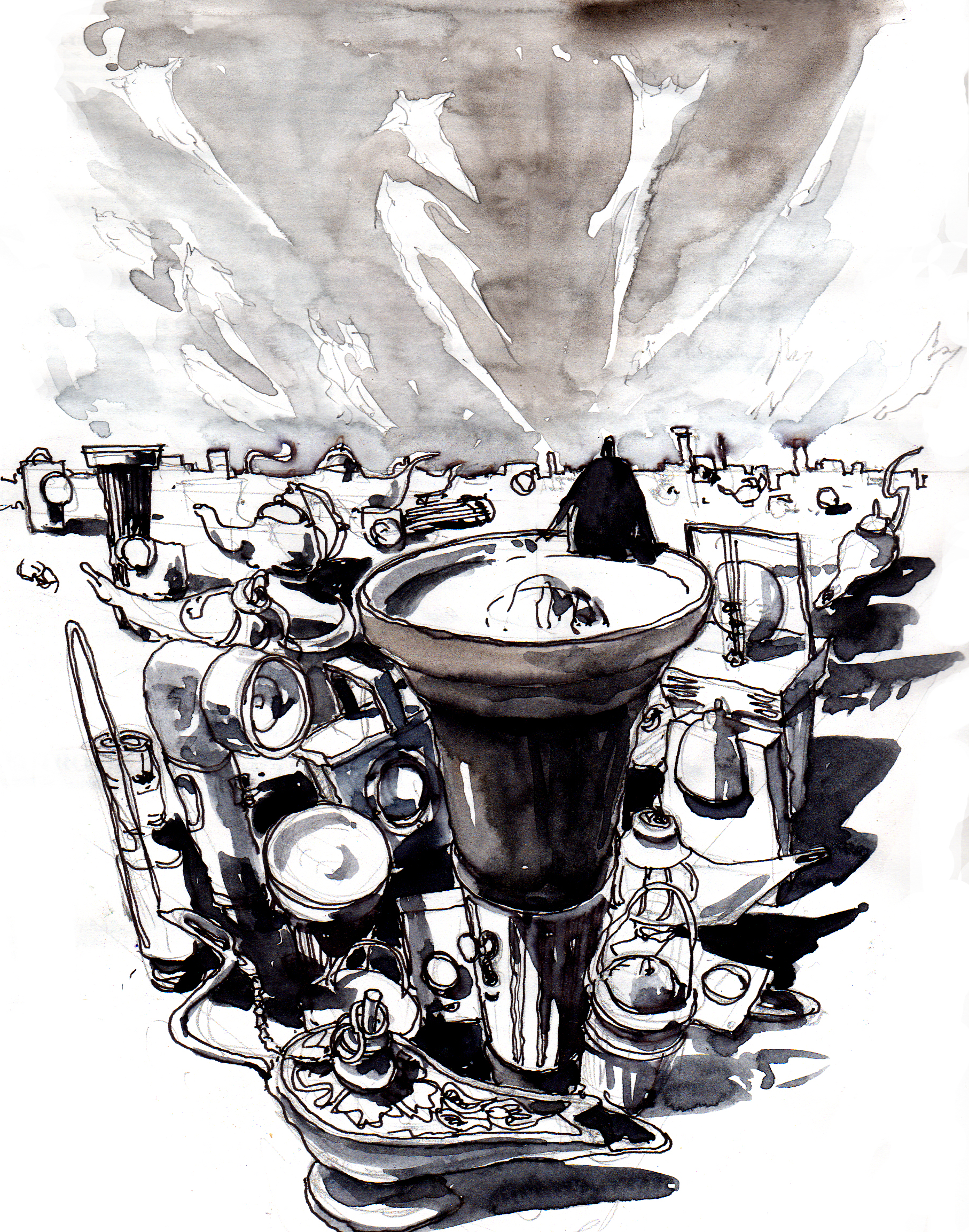 Después de la lectura de cada capítulo trate de salir de lo literal del texto. Es decir, la búsqueda estaba centrada en no REPRESENTAR alguna escena o detalle de manera exacta sino más bien que fueran ilustraciones más conceptuales. Si bien soy muy realista en mi forma de crear, me parecía interesante salirme de la copia-retrato directo para crear desde lo imaginario.