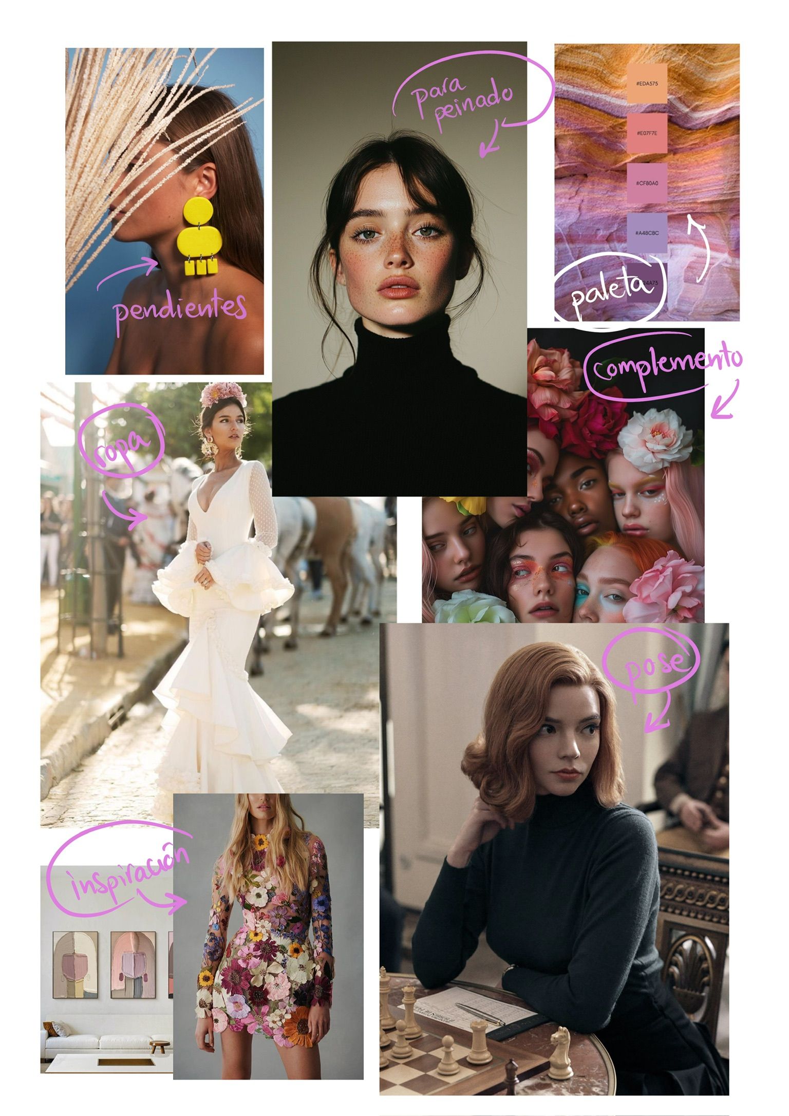 He creado mi moodboard con algunas fotos que me han gustado, las cuales he encontrado en otra app llamada Pinterest. El conjunto de fotos que he elegido me han ayudado a crear mi personaje, con el cual estoy muy contenta con el resultado final. Conforme he ido avanzando en mi proyecto he cambiado algunas ideas iniciales como es la ropa de mi personaje. Me gusta un top de la tienda HM, y lo he proyectado en mi personaje.