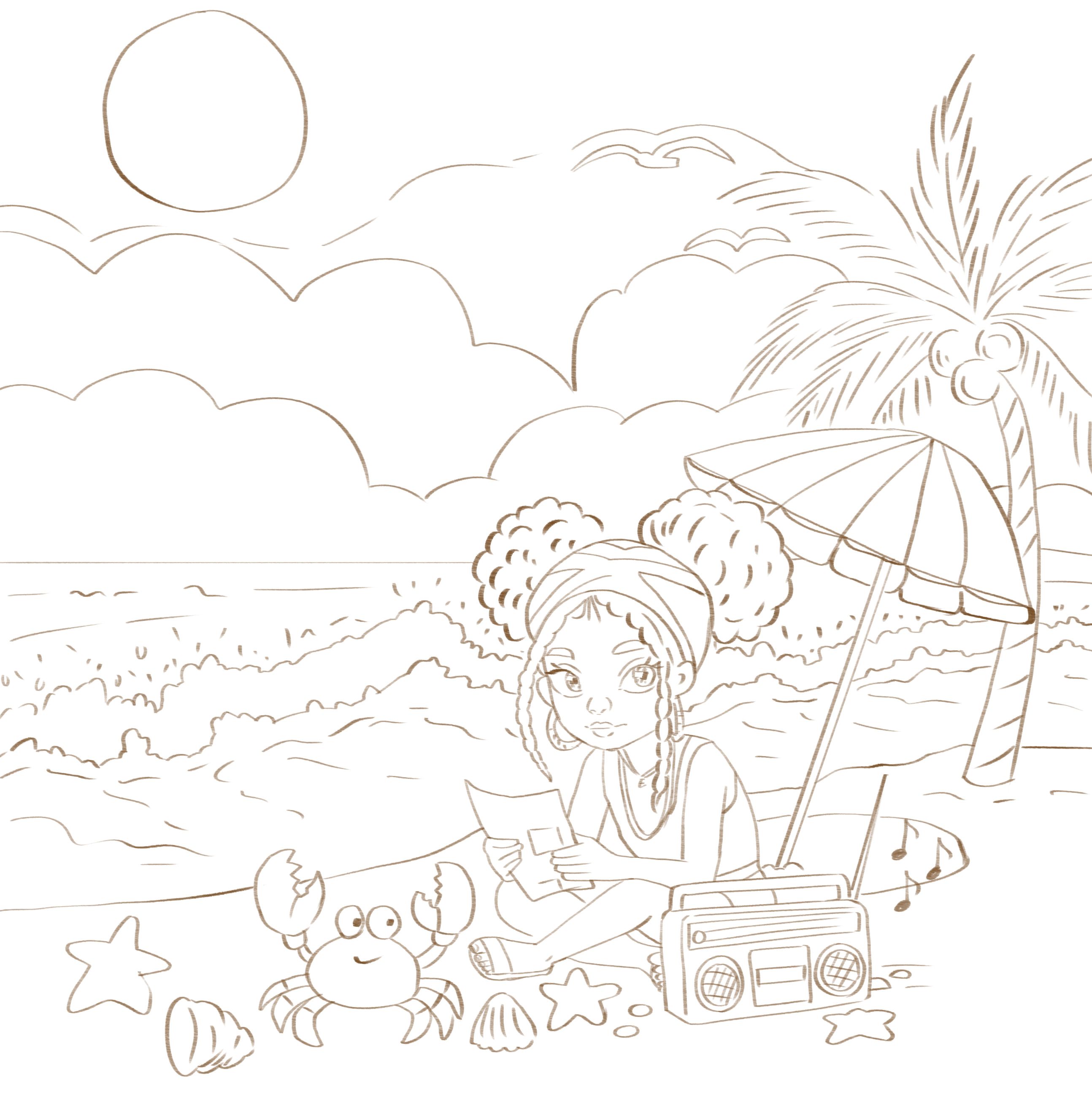 Jamaikanisches Mädchen am Strand – Buchfigur