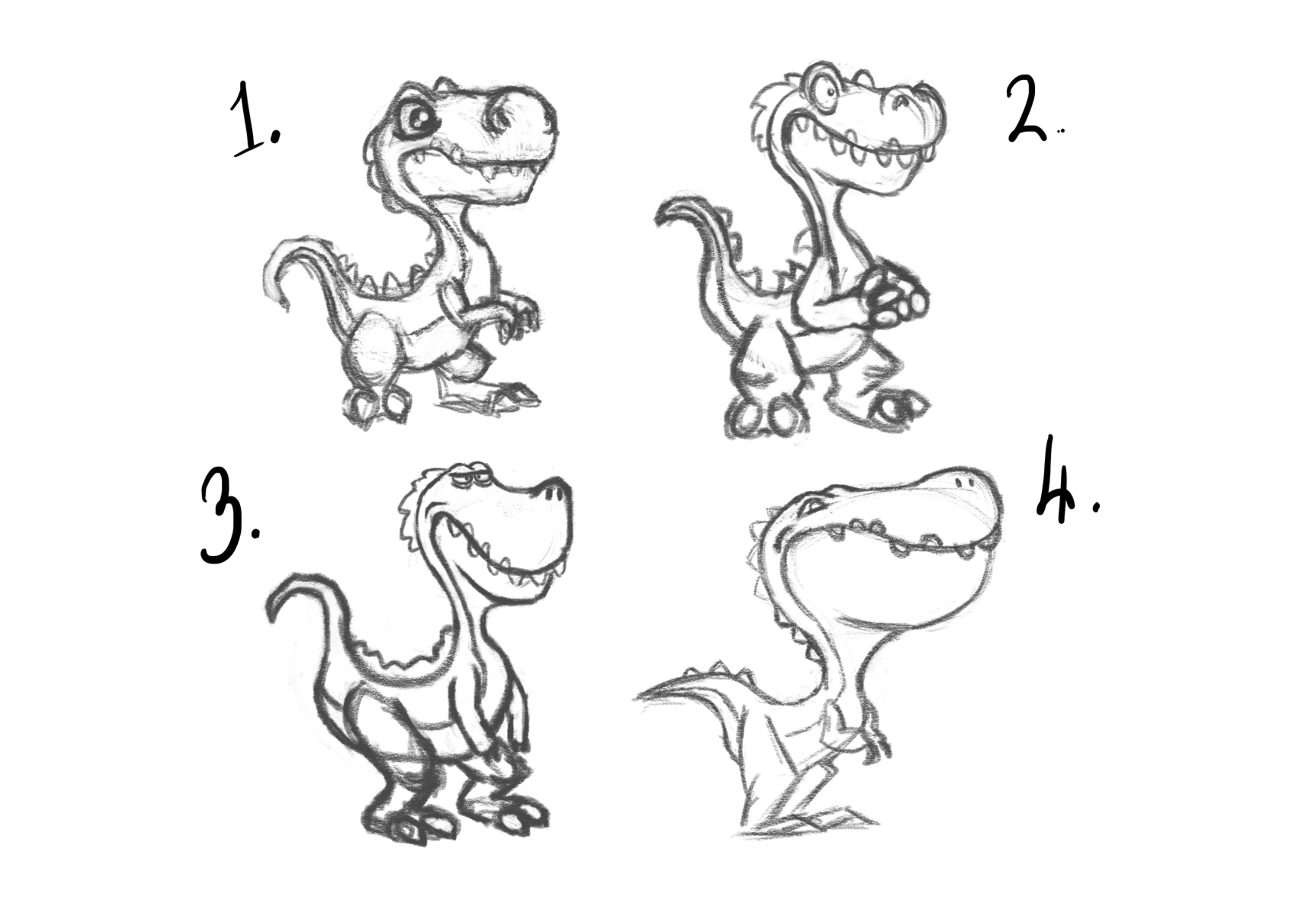 Ich begann meine Idealisierung mit dem Skizzieren von Ideen für die Dinosaurier. Ich wollte ein interessantes Bild mit weichen und geschwungenen Kanten finden.