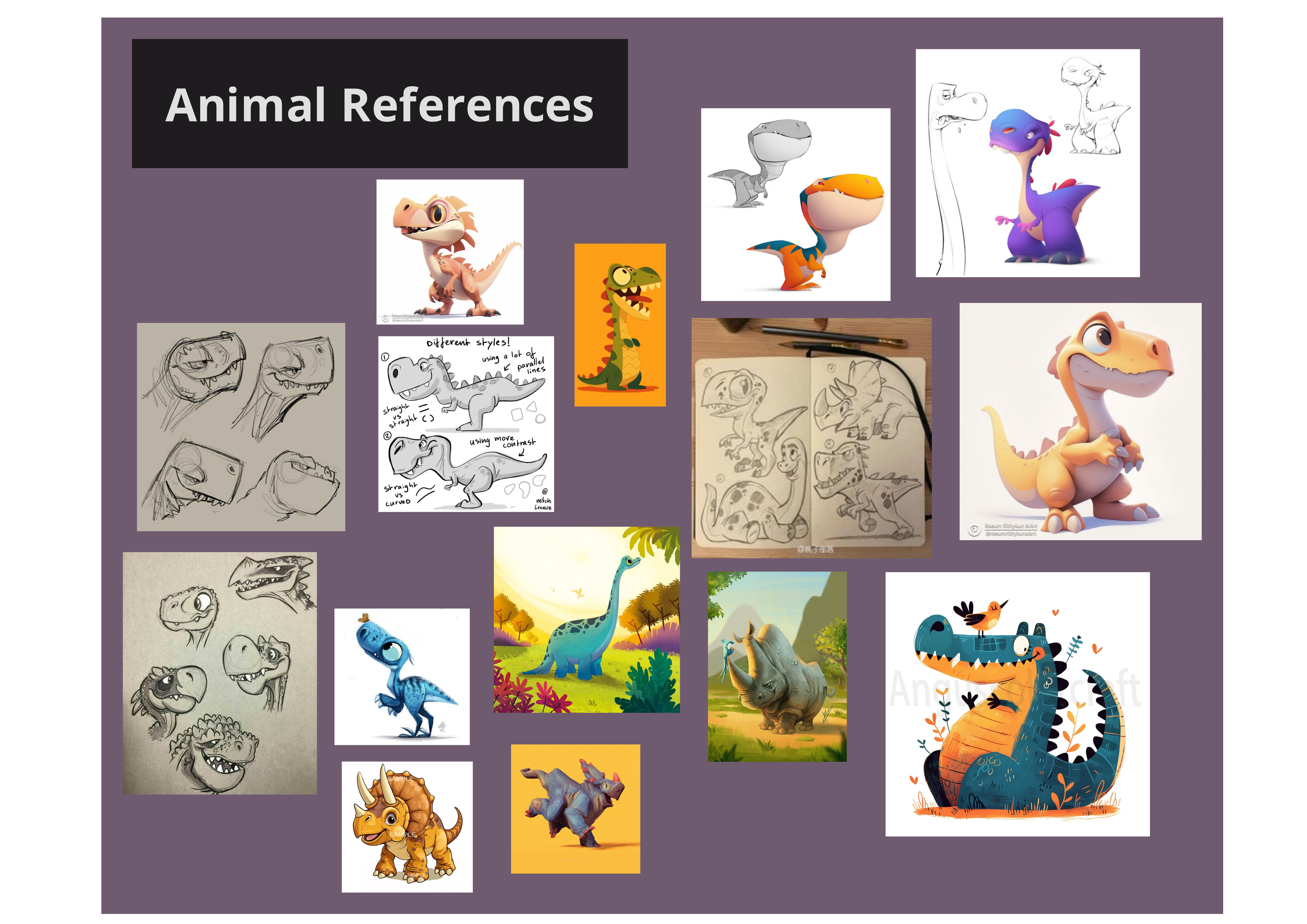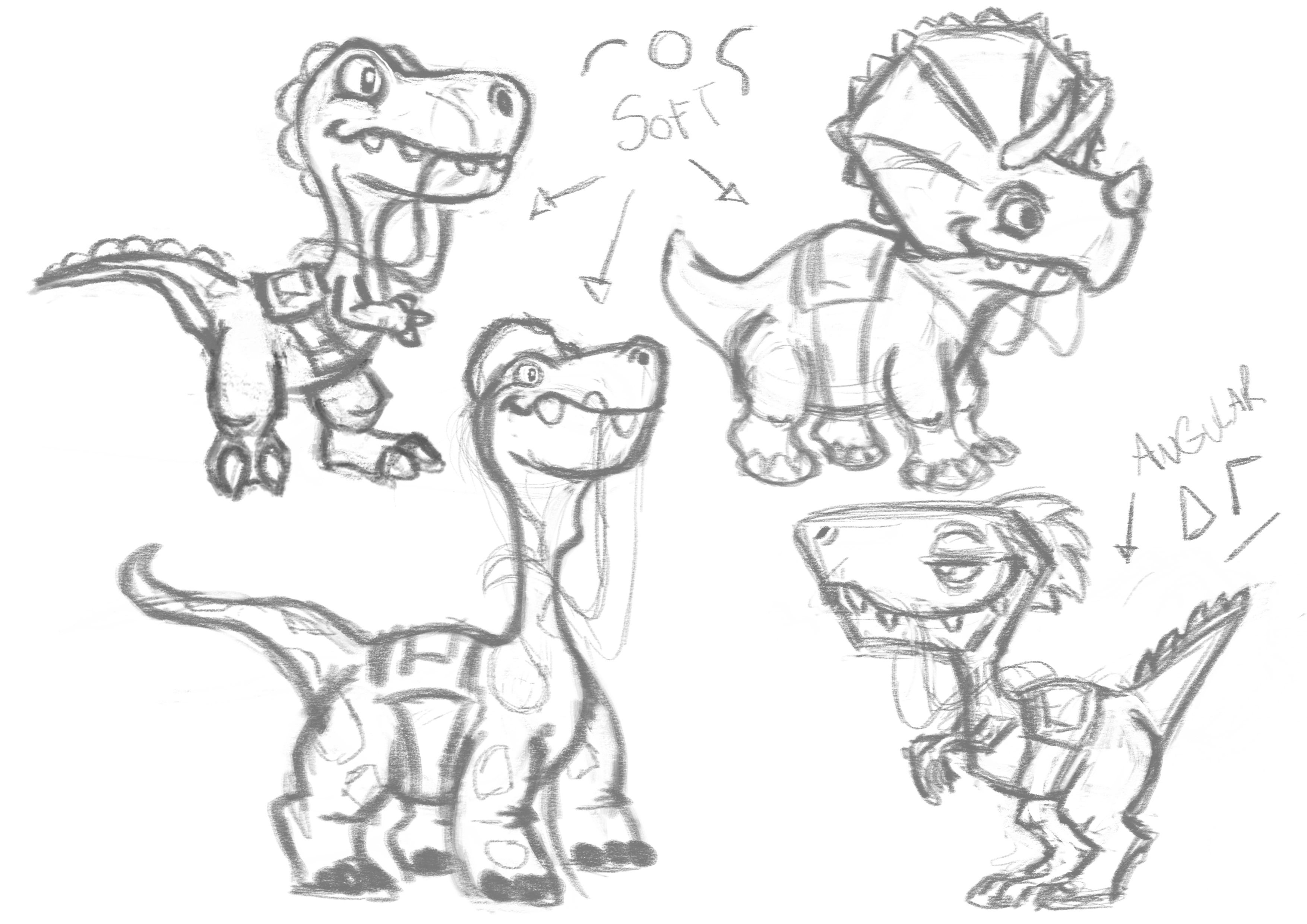 I stared my Idealisation with sketching ideas for the dinosaurs. I wanted to fin d an interesting visual which had soft and curvy edges