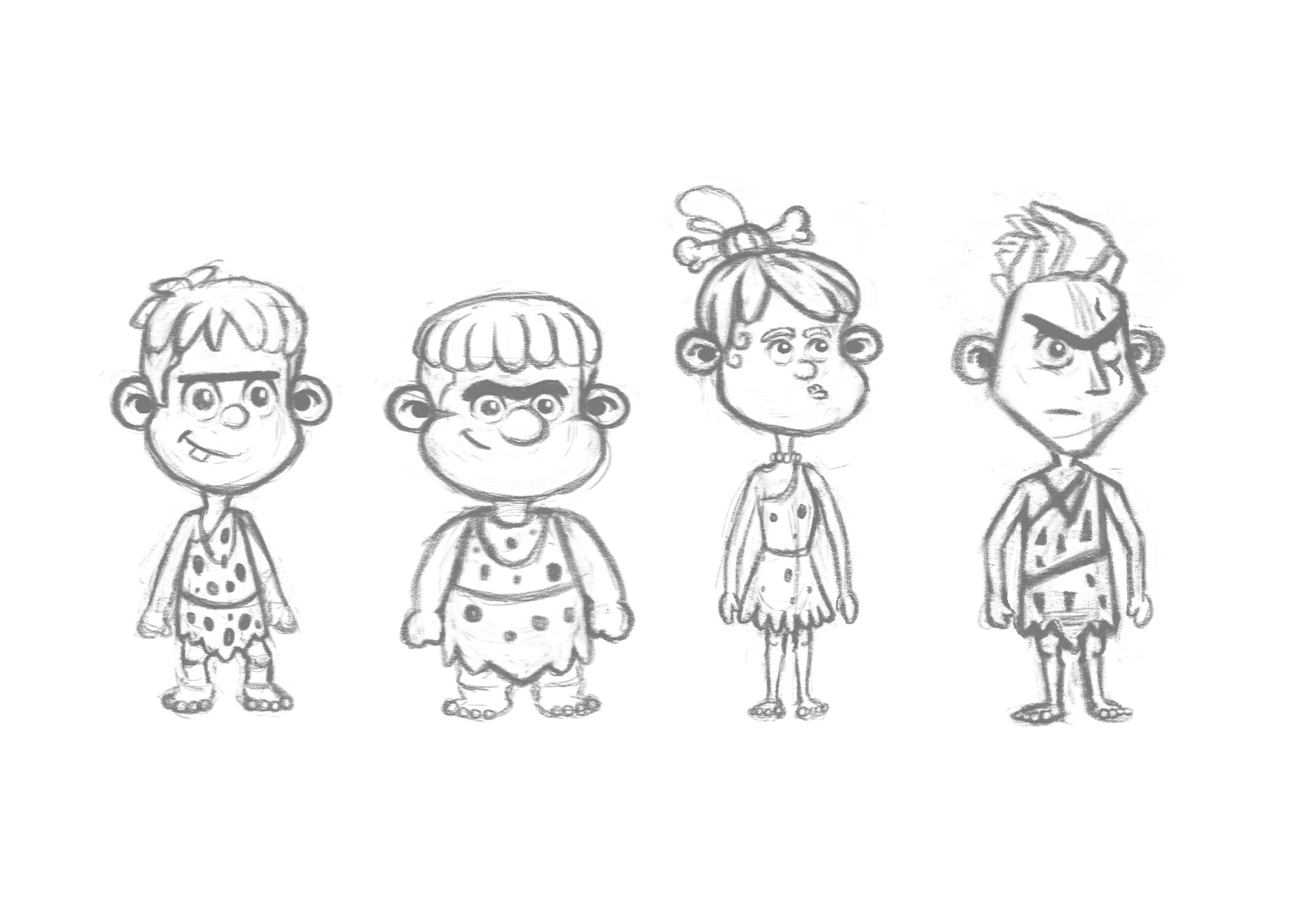 I then went onto sketching ideas for the caveman. At this stage I aimed to have multiple characters and dinosaurs in the final illustration. I wanted the boy to be easily connected to for children with simple shapes and organic outline.