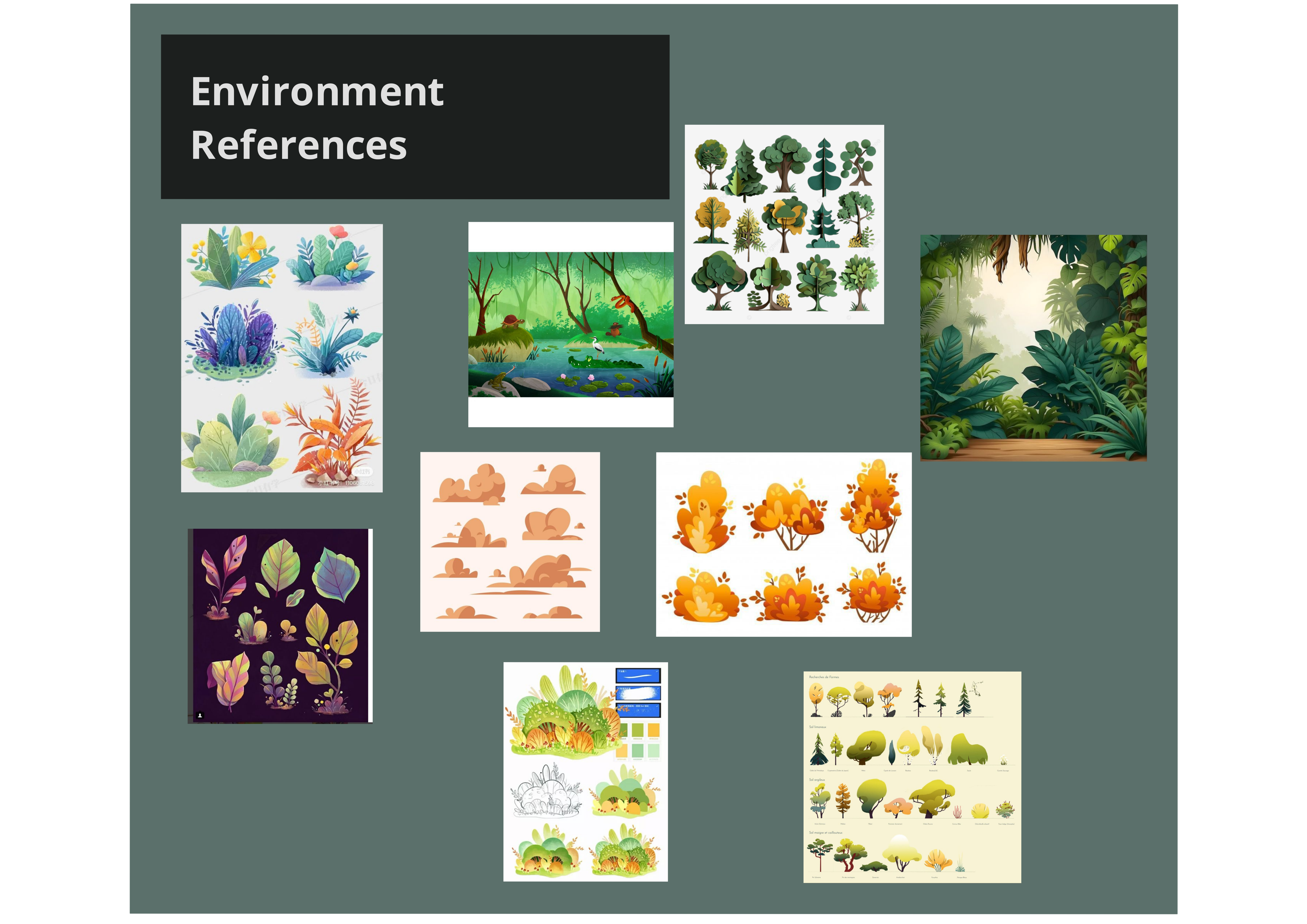 The environment references helped me come to the final result with simple shapes and textures. I implemented the gradient shading technique from the references which boosted the soothing mood of the piece.