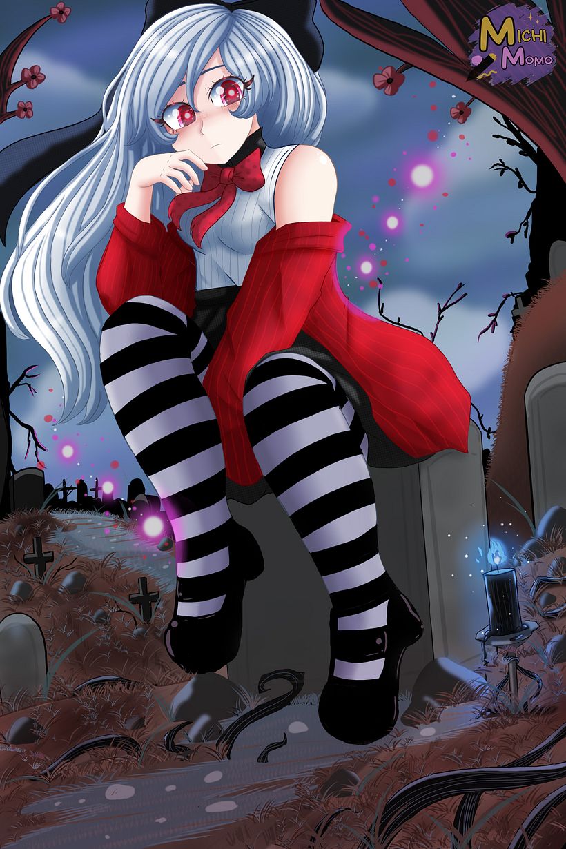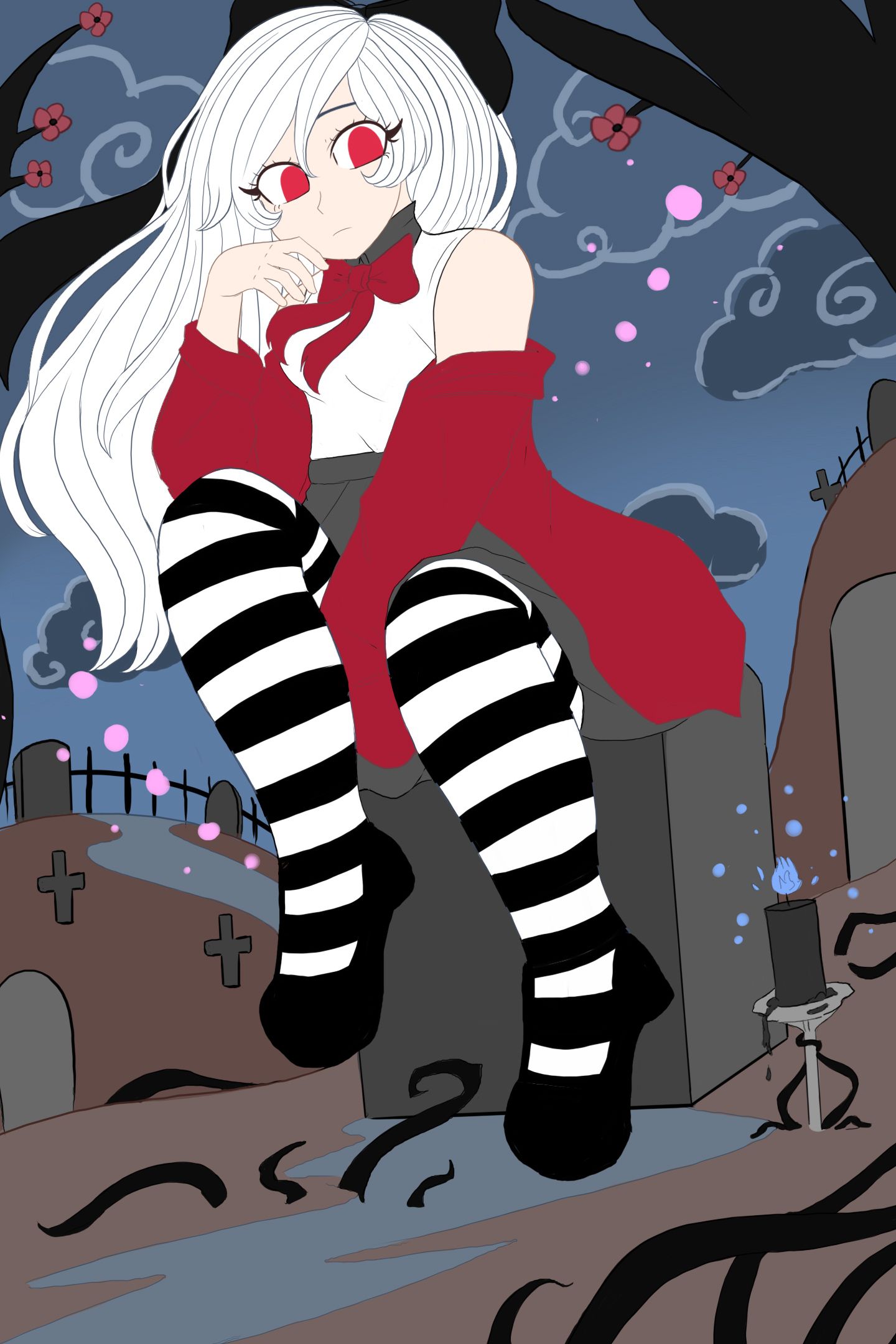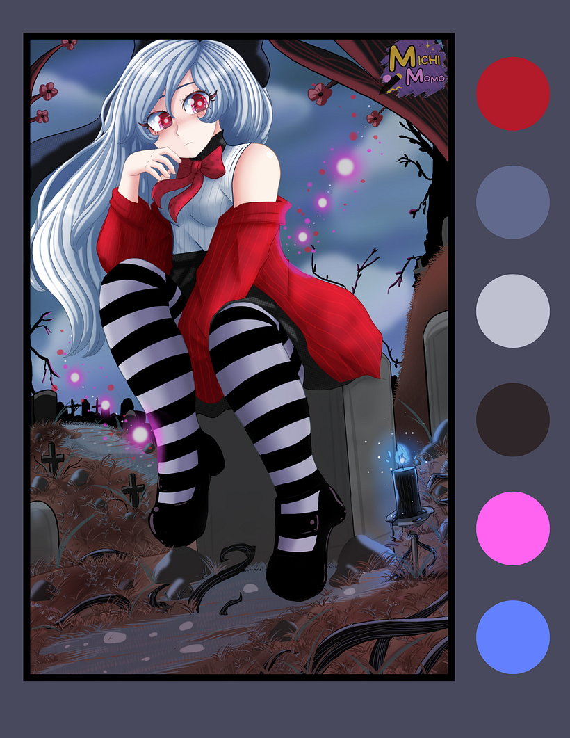 En mi proyecto he decidido ilustrar a uno de mis personajes originales llamada Alicia. La intensión es retratar el ambiente misterioso de un cementerio con un toque mágico.