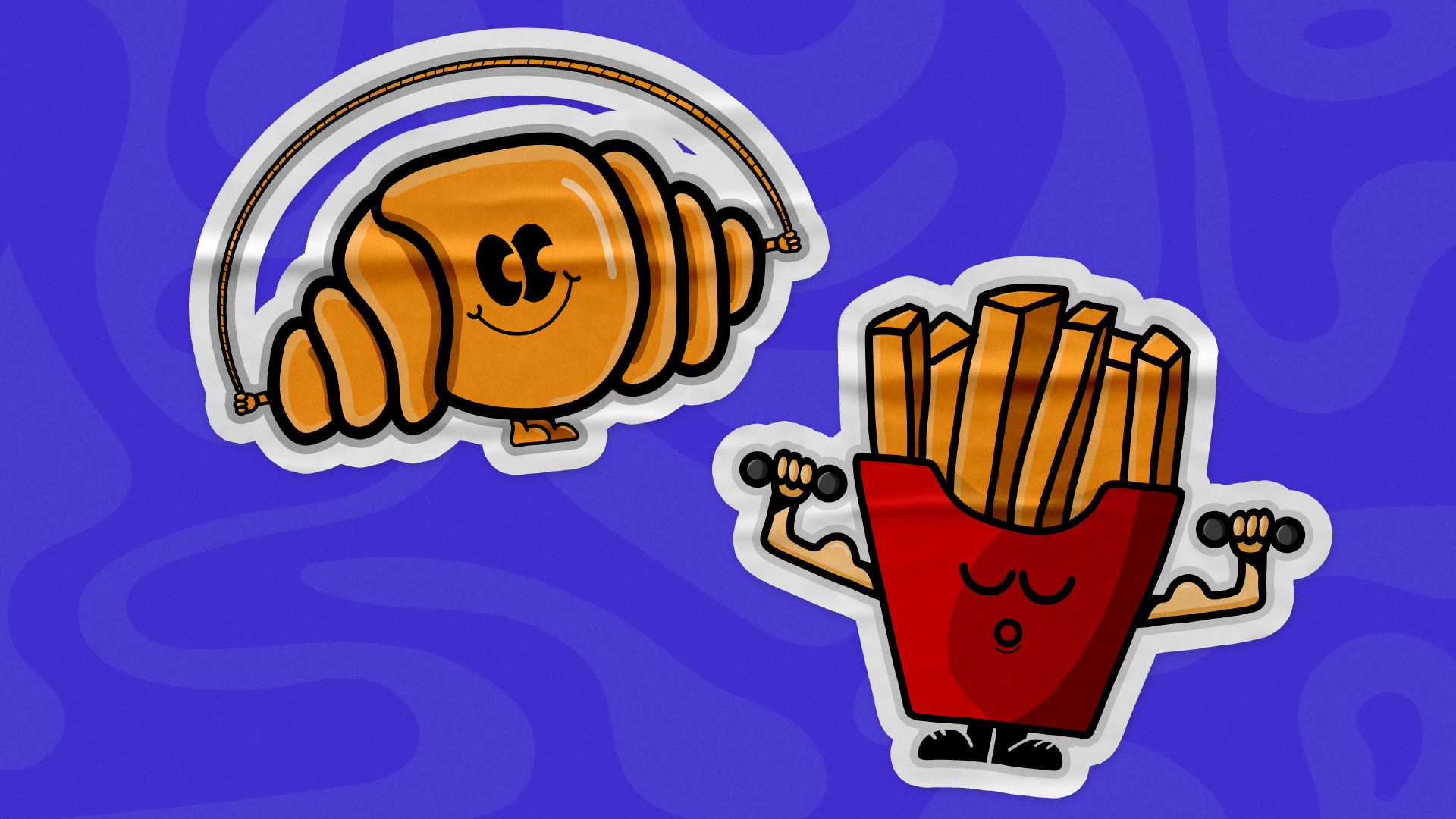 2 stickers that combines healthy lifestyle and junk food in a funny way.