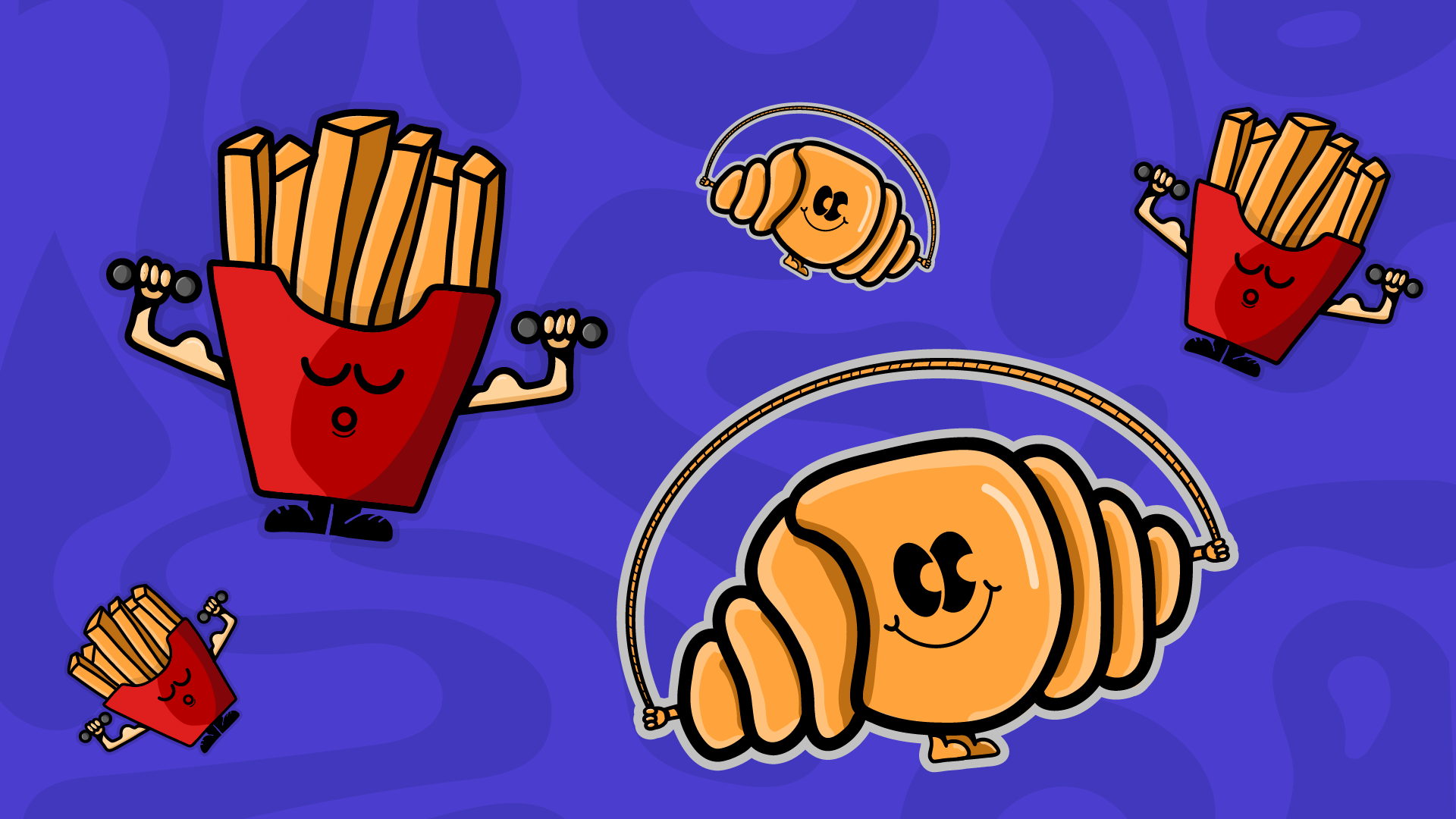 I love healthy life, and also the junk food. The struggle is real. So I combined both topics to create this stickers pack.