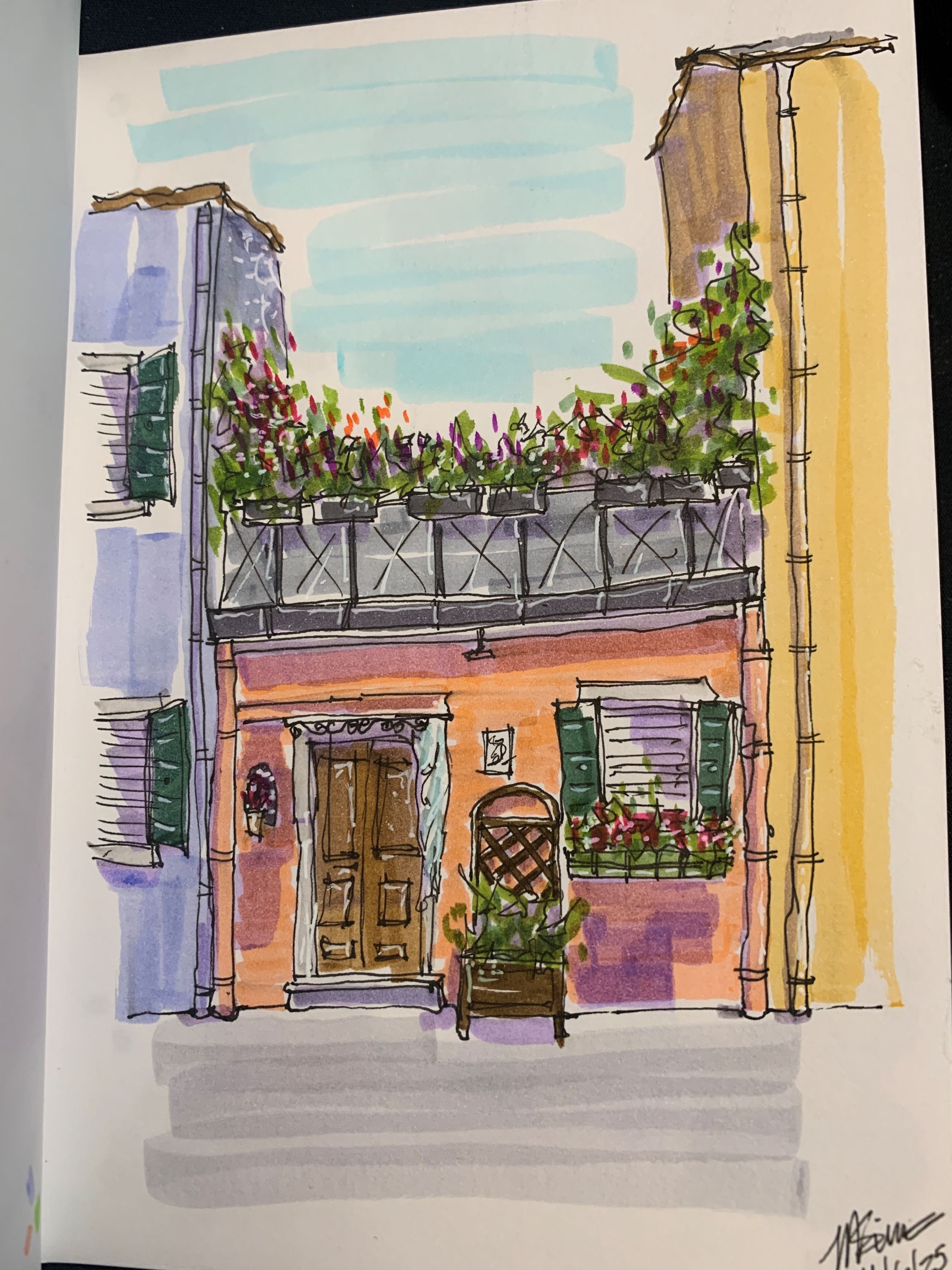 I've recently graduated college with a degree in Environmental Design/Architecture so I love to sketch buildings I see in person and online. I've gone through some styles but have grown to love loose linework with more expressionistic details and color rather than focusing on the realism. In the past I would tend to get caught up in the minute details and really kept me from wanted to draw regularly and this stylistic change has helped tons.